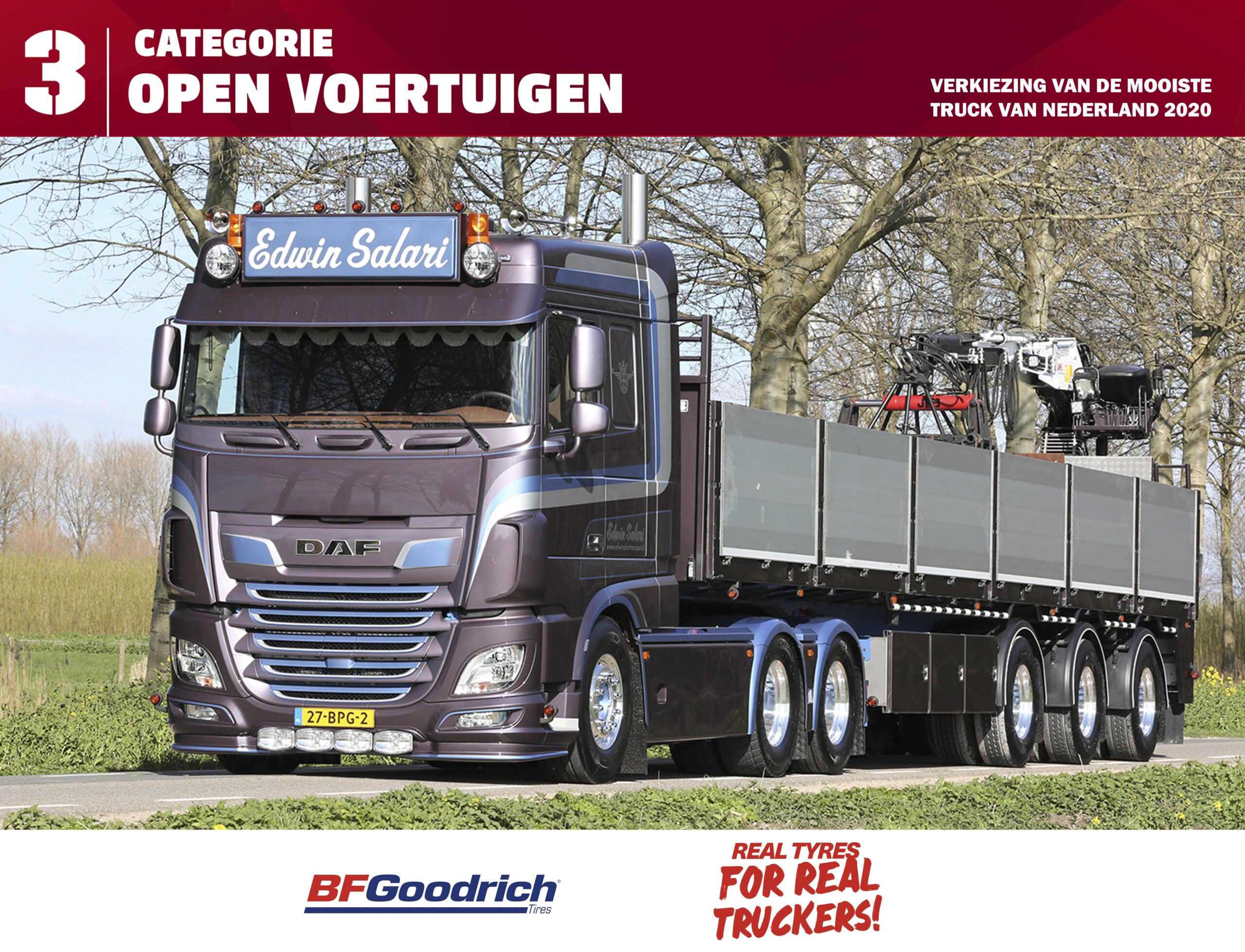 In 2017 werd er, uit deze categorie, voor het laatst een Mooiste Truck van Nederland gekozen door de vakjury. De Volvo FH van H. van Dalen ging er dat jaar met de eer vandoor. Dit jaar is de DAF XF van Edwin Salari genomineerd, maar trucks van dat transportbedrijf zijn geen onbekenden in de wereld van de verkiezing van de Mooiste Truck van Nederland. Zo is in 1994 de Scania 143H V8 500 verkozen tot de mooiste van Nederland. ‘Stenenwagens’, of het vervoer van bouwmaterialen lijkt populair, want in 2014 werd de titel toebedeeld aan de stoere combinatie van P.J. Hoogendoorn. Zal er dit jaar een truck uit deze categorie, open voertuigen, verkozen worden tot Mooiste Truck van Nederland? We weten het zaterdag 25 juli.