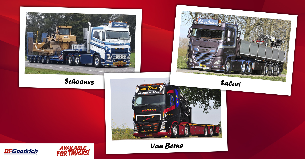 De verkiezing van de Mooiste Truck van Nederland wordt mede mogelijk gemaakt door BFGoodrich. Deze van oorsprong Amerikaanse bandenfabrikant is in 150 jaar uitgegroeid tot een wereldwijde organisatie die actief is in 140 landen. BFGoodrich maakt en levert banden voor alle marktsegmenten. Kijk voor meer informatie op truck.bfgoodrich.nl/news-events