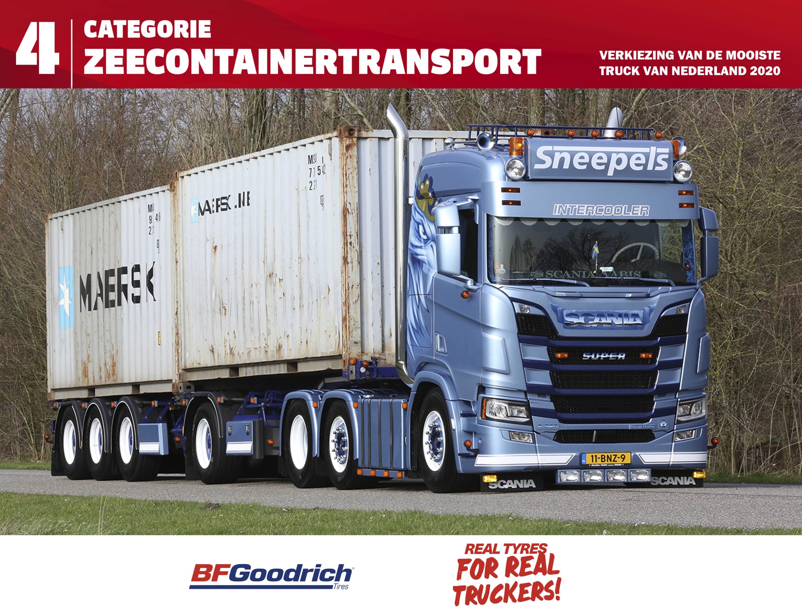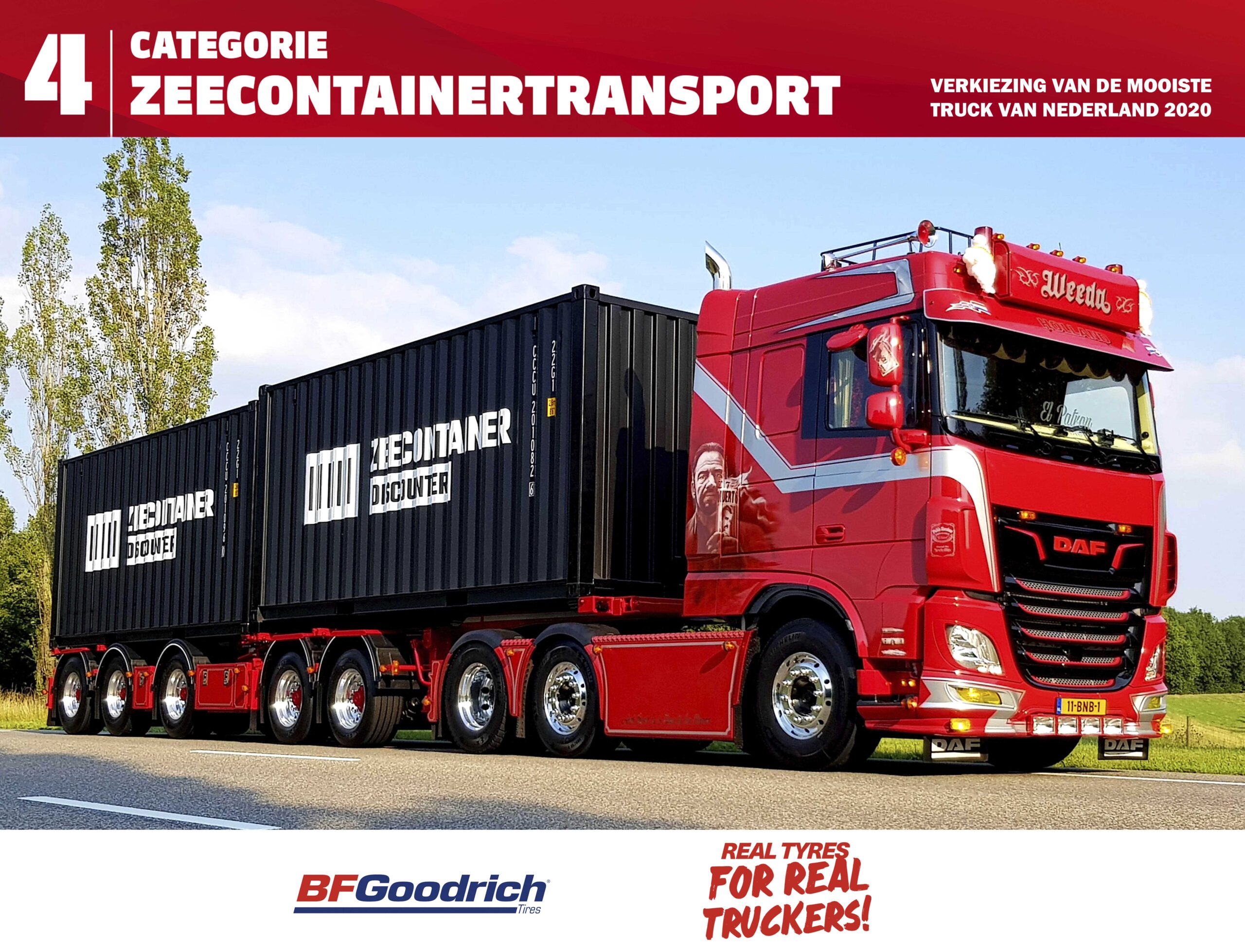 We moeten terug naar 2015 toen er uit deze categorie voor het laatst een overall-winnaar werd gekozen. De Mooiste Truck van Nederland uit dat jaar is de DAF XF van J. Jansen. Een jaar later, in 2016, streden de trucks van Weeda, A. Stam en Gebroeders de Kraker om de titel. Geen van die trucks werd dat jaar overall Mooiste Truck van Nederland. Een andere opvallende truck in categorie 4 – zeecontainertransport is de auto van Michel Kramer, in 2012 werd hij met zijn Scania Longline Mooiste Truck van Nederland.