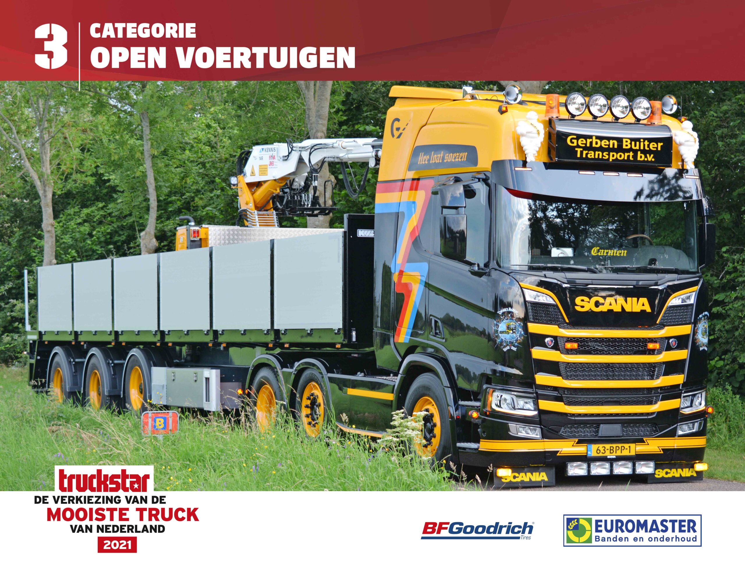 Uit meer dan 1400 vrachtwagens kozen de lezers van het Truckstar Fotojaarboek de trucks die zij een prijs waard vinden. Het Truckstar Festival mag dit jaar dan niet doorgaan, de verkiezing van de Mooiste Truck van Nederland gaat wel door! Hieronder presenteren we je de genomineerden in categorie 3 – open voertuigen.