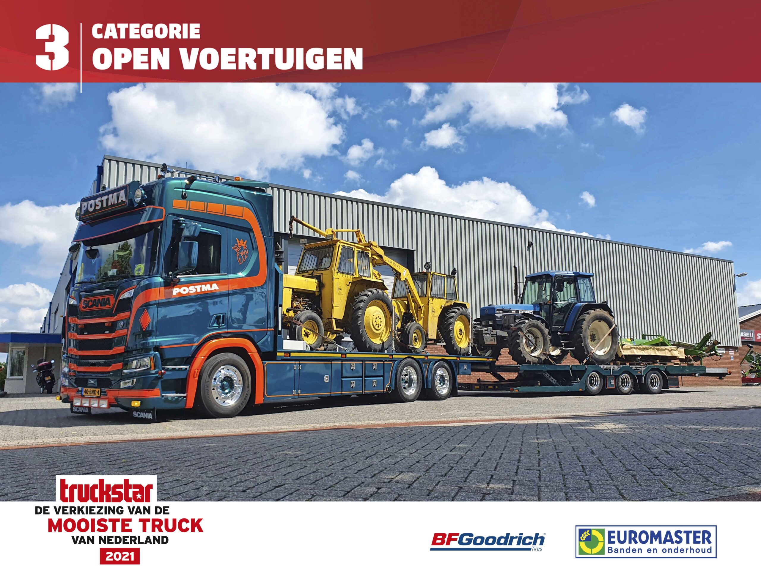 De laatste Mooiste Truck van Nederland uit deze categorie is de Volvo FH van Harry van Dalen. In 2017 ging hij er met de eer vandoor. In 1994 is de Scania 143H V8 500 van Salari verkozen tot de mooiste van Nederland. Vorig jaar won de stoere combinatie van Bram Schoones de eerste prijs in categorie 3 – open voertuigen.