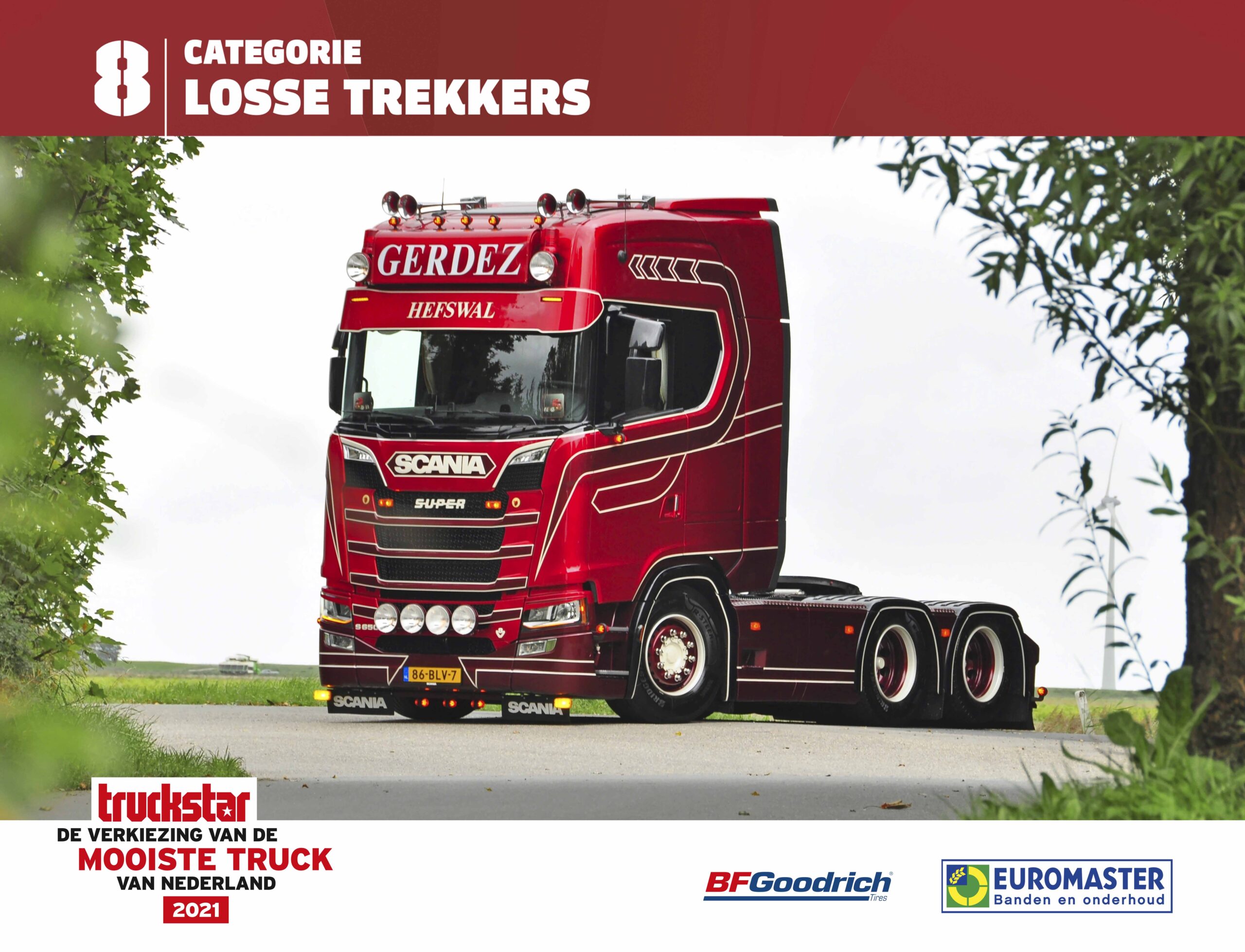 Uit meer dan 1400 vrachtwagens kozen de lezers van het Truckstar Fotojaarboek de trucks die zij een prijs waard vinden. Het Truckstar Festival mag dit jaar dan niet doorgaan, de verkiezing van de Mooiste Truck van Nederland gaat wel door! Hieronder presenteren we je de genomineerden in categorie 8 – losse trekkers.
