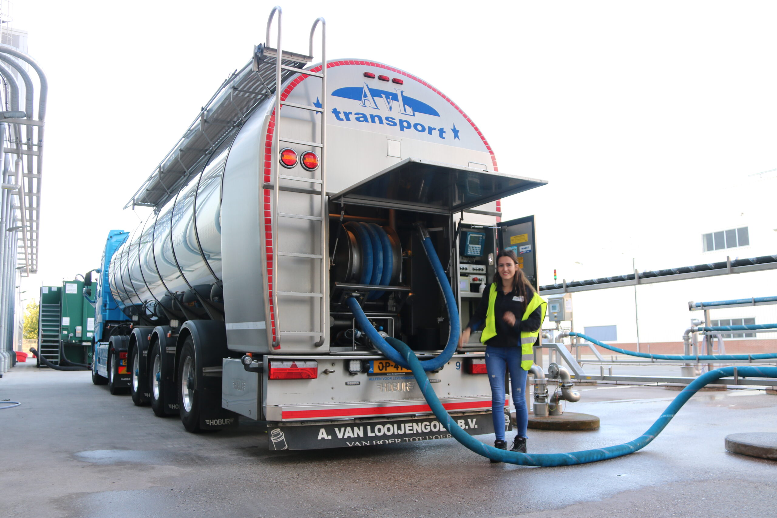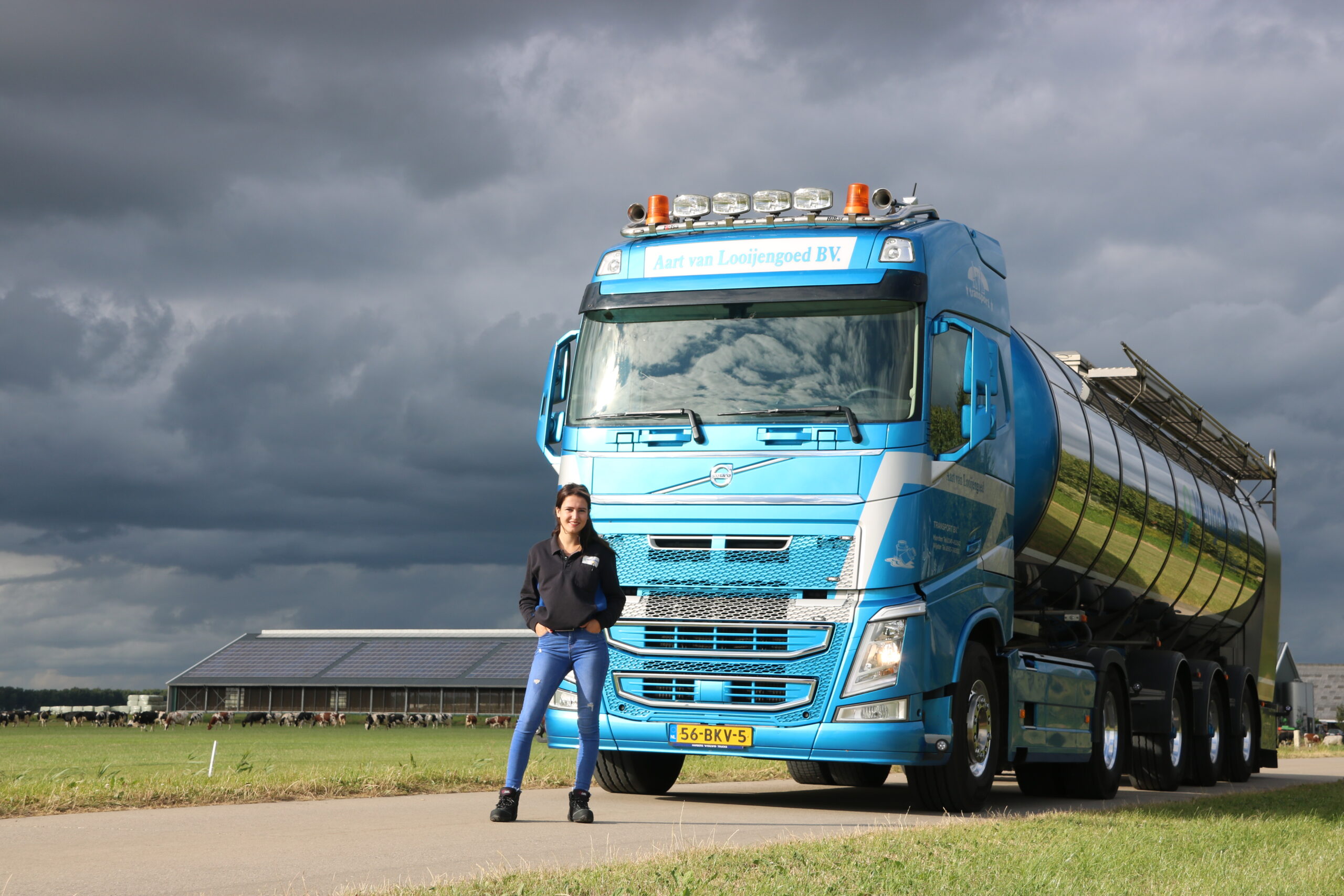 Ze rijdt het Lepelaarpad op, een smal boerenweggetje, en steekt haar truck met meegestuurde assen met speels gemak het terrein op van de eerste boer. Daarna ‘rolt’ ze de slang uit, koppelt die als een vermaard technicus aan een grote melktank en in rap tempo zuigt de slang het witte goud de tank in. Melk rijden doet ze drie weekenden per maand, vertelt ze tussendoor. “Op dinsdag, woensdag en donderdag werk ik in ons familiebedrijf. Ik doe de planning en leer op dit moment hoe de boekhouding werkt. Het transportgedeelte van het bedrijf overnemen. Mijn zwager neemt het loonwerk over”, zegt ze.