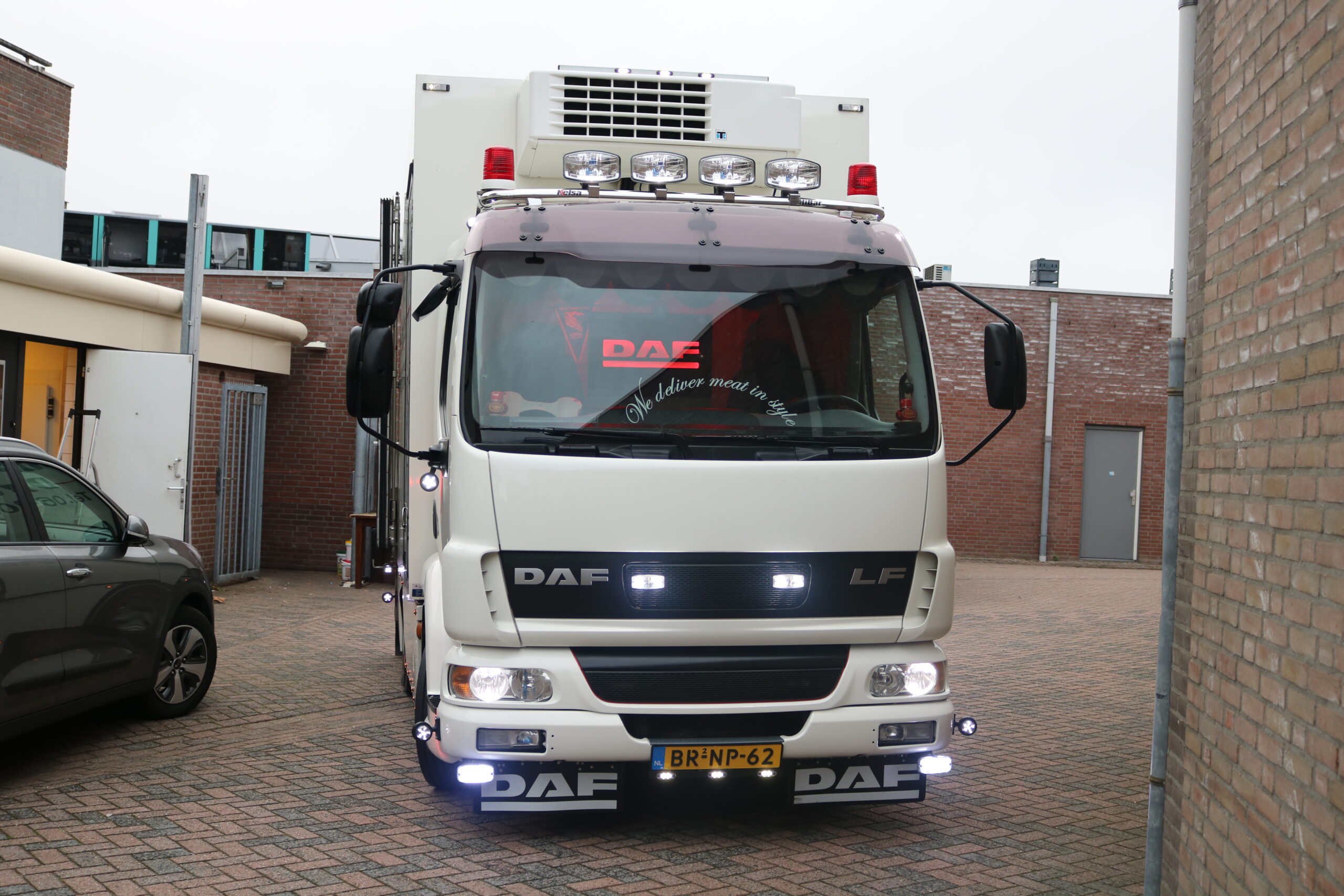 Waarom zou je een LF niet opbouwen met extra lampen, luchthoorns en een dikke uitstraling? De DAF LF 45.150 uit 2005 van Vleeshandel Willems uit Druten is hooguit zes meter lang, maar doet niet onder voor bijvoorbeeld een stoere XF. Het vooroordeel van het kleintje dat wil meedoen met de grote jongens, dringt zich al gauw op. Niet terecht, want dit is duidelijk een geval van ‘klein én fijn’.