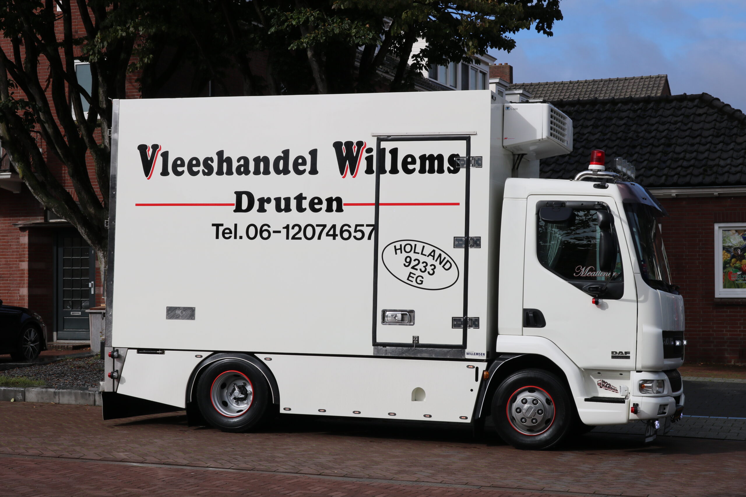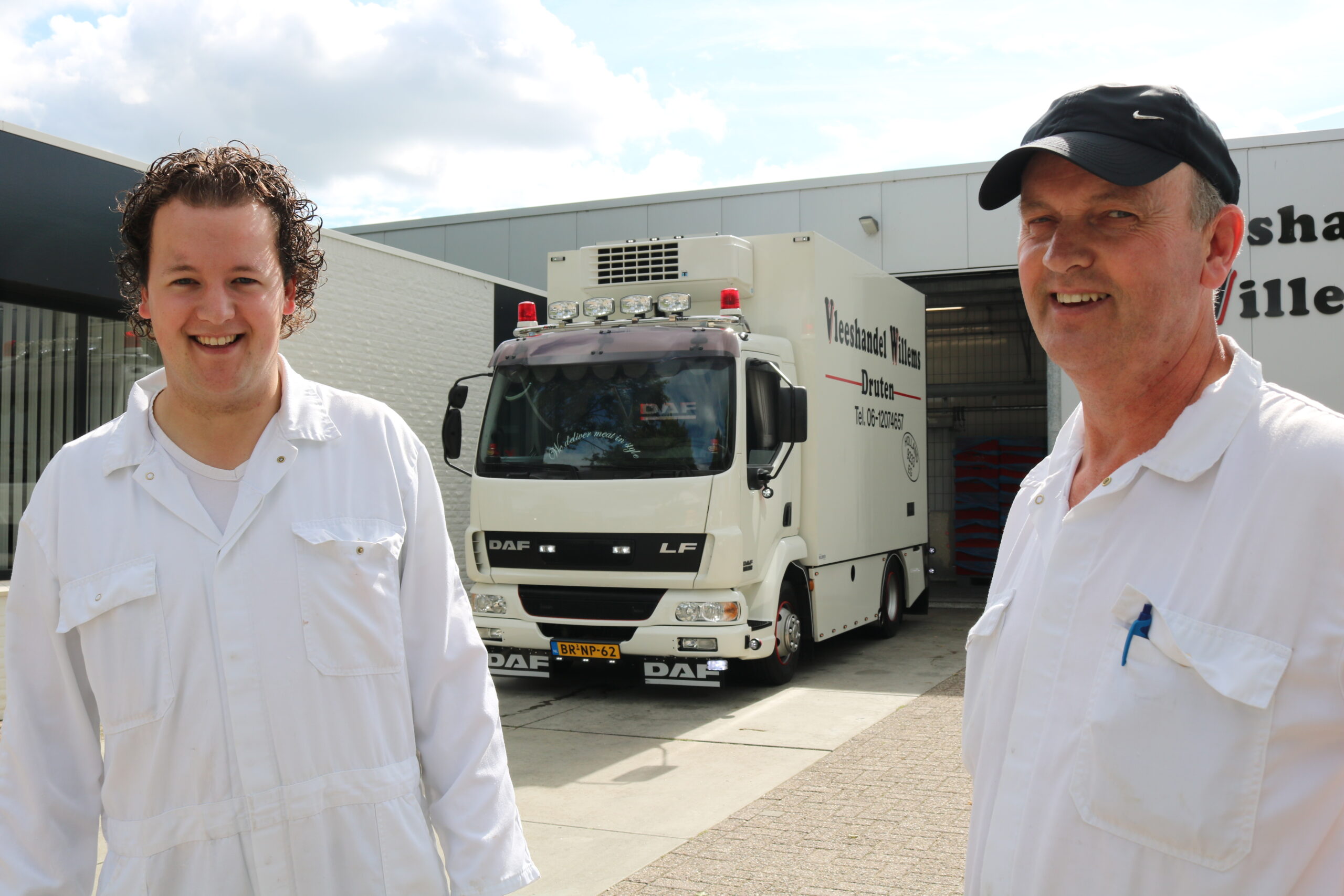 In principe is Ruud Smits de trotse chauffeur, maar de opbouw van de DAF is geheel ontworpen en uitgevoerd door zijn zoon Joeri (23) met zijn vriendengroep. Joeri is student HBO Bouwkunde aan de Hogeschool van Arnhem en Nijmegen. Daarnaast werkt hij al enige jaren in de ambachtelijke vleeshandel van zijn neef Mark Willems, waar vader Ruud al enige jaren chauffeur is. “Ik werkte in de bouw”, vertelt vader Ruud in de vroege ochtend als vader en zoon samen de eerste bestellingen in de gekoelde truck laden. “Maar in de nasleep van de crisis verloor ik mijn werk en toen kon ik hier aan de slag als chauffeur.”