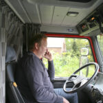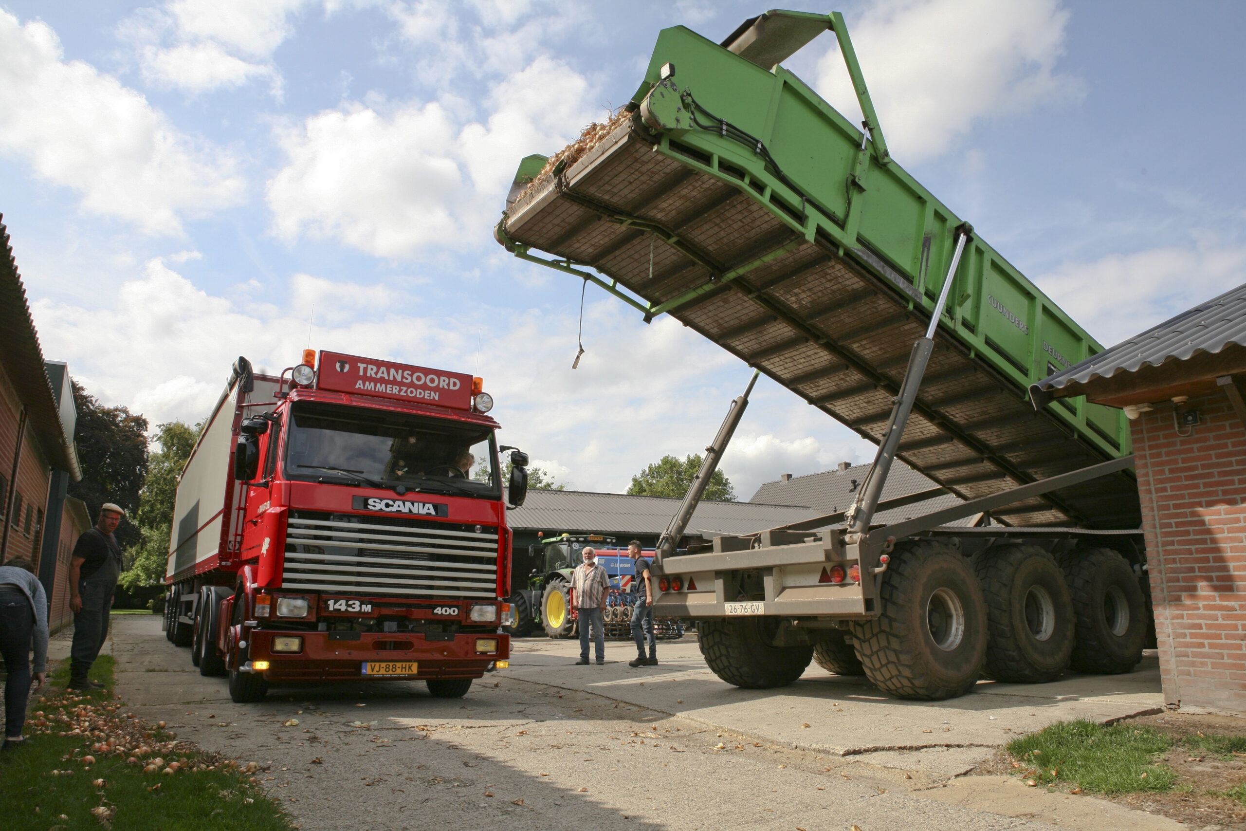 De Scania staat in de garage al warm te draaien als ik om 09.00 uur het terrein van het transportbedrijf in Velddriel oprijd. Terwijl ik mijn auto parkeer, komt al grommend vanuit een blauwzwart rookgordijn de 143 naar buiten. Peter koppelt hem alvast aan de onderlosser waar de uien in moeten. Een beetje beteuterd komt hij op mij af gelopen. Hij houdt zijn smartphone omhoog. “De boer in Nederweert belt me net op dat we voorlopig niet kunnen laden. Het regent daar. Koffie?”