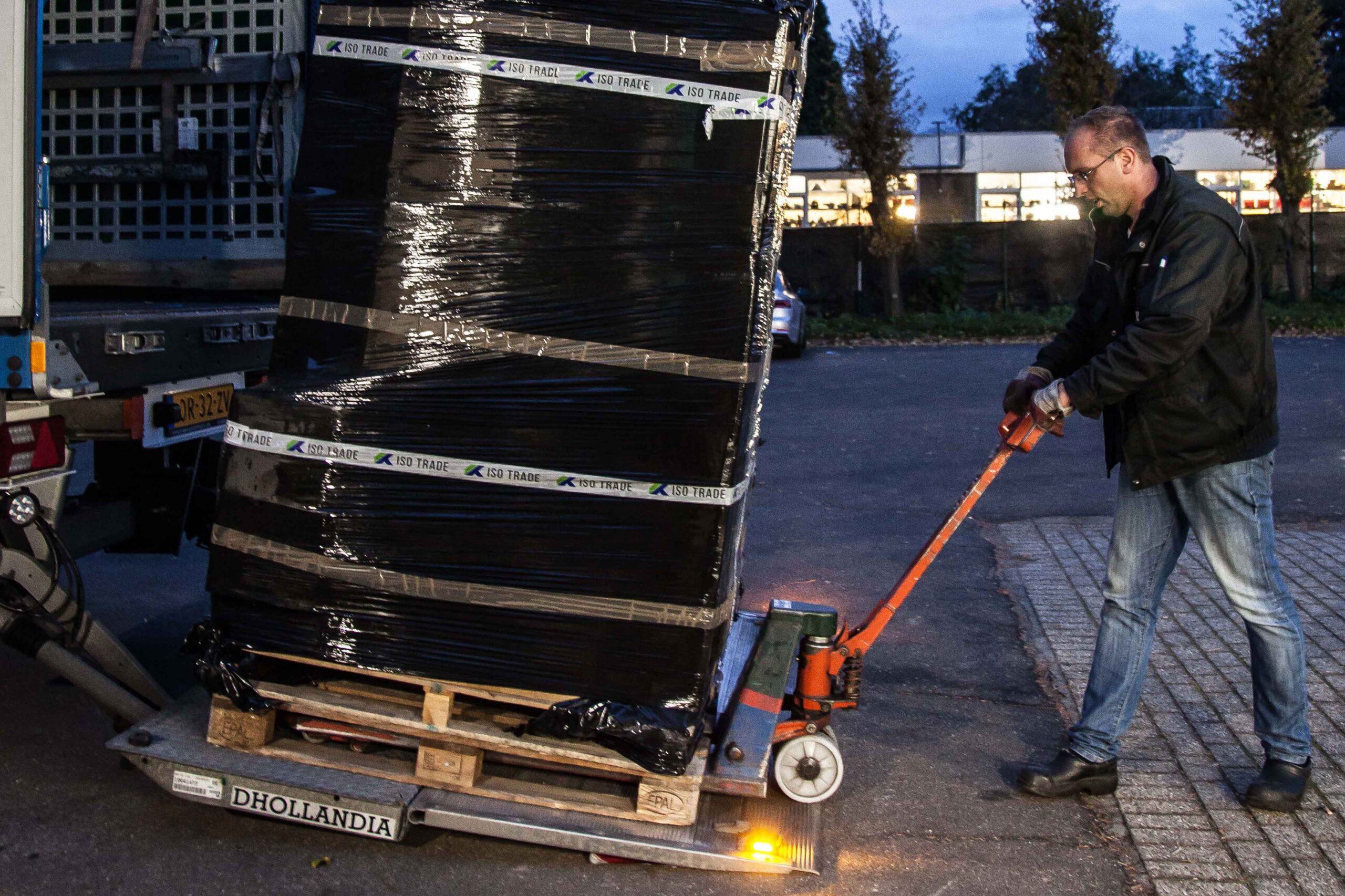 Vandaag staat een rondje Limburg op het programma, zegt hij voor we vertrekken. Het eerste losadres is in Maastricht. De eigenrijder heeft zijn cijfers goed op orde en bekijkt het werk vooral zakelijk. “Alleen door zo vroeg te vertrekken, kan ik het binnen de rijtijden halen. Vertrek ik later, dan raak ik vast in het verkeer en dan red ik het niet binnen de uren. Twee keer in de week mag ik tien uur rijden; de overige dagen maximaal negen.” Iets voor 07.00 uur parkeren we voor de deur van het eerste losadres op het industriegebied Beatrixhaven in Maastricht. De heftruck komt meteen en binnen een mum van tijd zijn de drie pallets eruit. Even een bak koffie en dan gaan we op weg naar het volgende losadres in Maastricht.