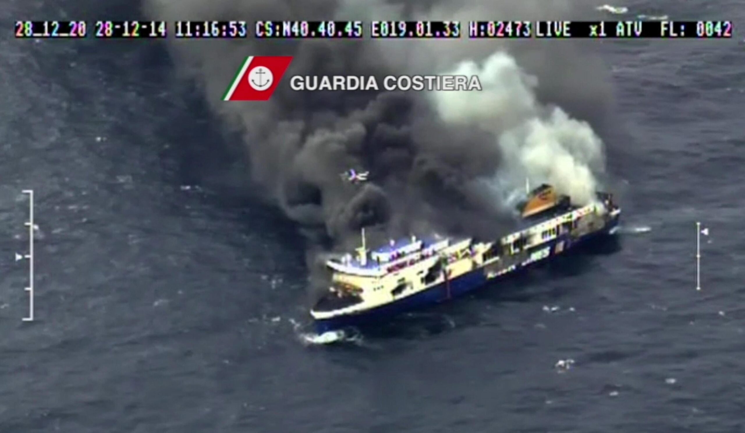 Het schip was op weg van de Griekse havenstad Patras naar de Italiaanse stad Ancona. In de vroege ochtend van zondag brak brand uit op een autodek. De brand verspreidde zich snel en het schip verloor haar aandrijving en raakte stuurloos.