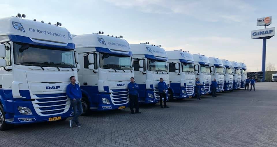 Afgelopen zaterdag heeft De Jong Verpakking negen nieuwe vrachtwagens van het type DAF XF 450 FT Super Space Cab ontvangen. De sleutels zijn zaterdag 30 maart feestelijk door Truckland aan de chauffeurs overhandigd in het bijzijn van eigenaar Henk de Jong zelf.