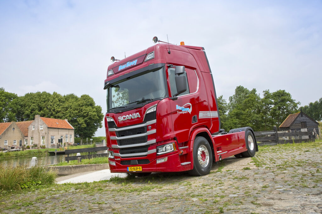 Met die gedachte in het achterhoofd schafte Bas Kooij recent acht nieuwe Scania R450 6×2 4 Highlines met hefbare gestuurde naloopas van de huidige generatie. Vanwege het 30-jarig jubileum van het bedrijf kwam er ook nog één rondom luchtgeveerde New Generation Scania 4×2 R450 trekker.