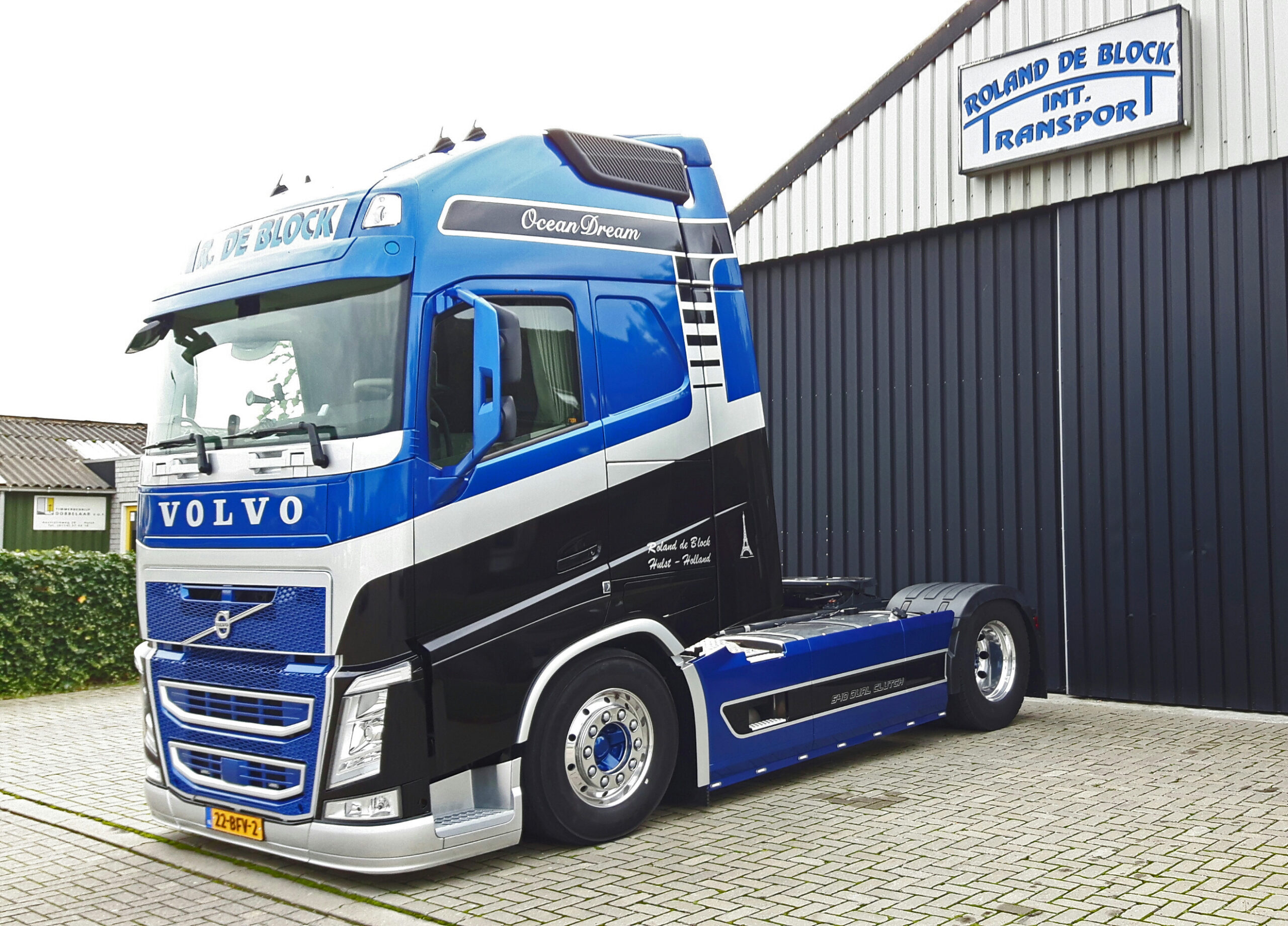 Maar de truck is inmiddels verkocht en rijdt in een heel nieuw kleurenschema rond: dat van Transportbedrijf Roland de Block uit Hulst. En dat misstaat de truck niet. Het Volvo iron mark is naar beneden verhuisd en de truck is geheel nieuw gespoten.