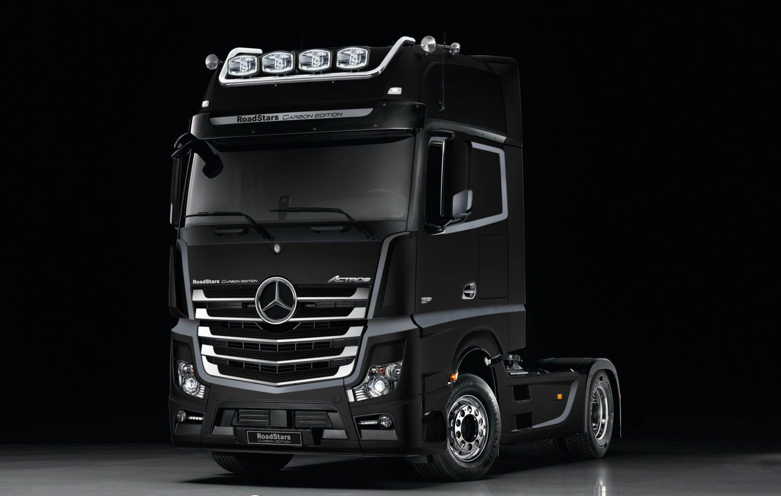 Mercedes-Benz heeft de opvolger gepresenteerd van de Actros SilverStar, de nieuwe special krijgt de naam Actros RoadStars Carbon Edition mee. Deze wordt geleverd in een gelimiteerde oplage van 30 stuks en heeft een rijke standaarduitrusting, een 480 pk sterke motor, een unieke striping en een interieur in carbon look. De Actros met GigaSpace-Cabine krijgt onder meer het Comfort-pakket, het Safety-pakket, het Zichtpakket, Predictive Powertrain Control, comfortstoelen, een premium matras en een koelkast mee. Het exterieur valt op door de diepzwarte metallic lak, de Alcoa velgen, dakspoilers en een verlichte Mercedes-Benz ster. En uiteraard zijn de spiegels en cabine voorzien van carbon look accenten.