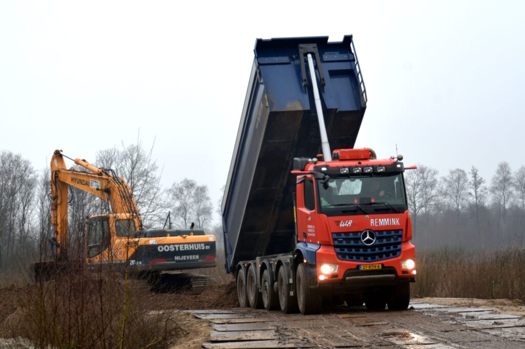 “Wij rijden zand, grind, grond en wat er maar voorkomt in onder aanneming en verhuur. Onze trucks moeten lang mee gaan, meestal rond de tien jaar. Betrouwbaarheid, degelijkheid en lage onderhoudskosten zijn voor ons dan ook van het grootste belang. In 2018 kochten we onze eerste Mercedes-Benz Arocs, een 8×8 Wide Spread van Veldhuizen Trucks. Ik ben heel eerlijk dat ik aanvankelijk sceptisch was over dat systeem. Wij doen alle kleine onderhoud zelf in onze eigen werkplaats, maar voor dat stuursysteem heb ik toen een onderhoudscontract afgesloten voor tien jaar. Veldhuizen had daarvoor het vertrouwen in zijn eigen systeem en dat begrijp ik ook, want nu, inmiddels vijf jaar later kan ik melden dat het een foutloos en degelijk systeem is,” vertelt Harry Remmink.