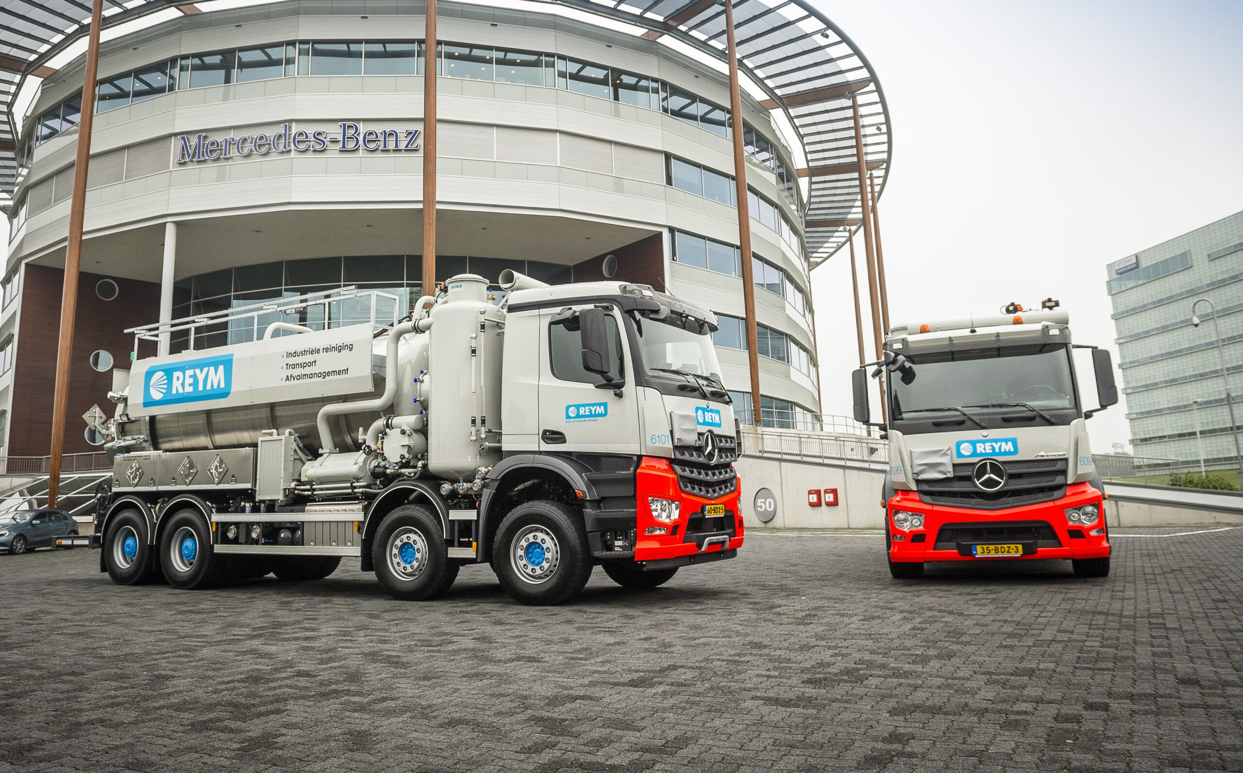 De Reym Groep is een groot bedrijf dat zich helemaal toegelegd heeft op industriële reiniging, transport en afvalmanagement. Reym beschikt over een wagenpark van 170 vrachtwagens, waarvan 100 geleverd door Mercedes-Benz, met daarnaast 71 Mercedes bestelwagens. Met dit wagenpark verzorgt Reym op veilige en milieuverantwoorde wijze transporten van droge stoffen, slib, vloeistoffen en gevaarlijke afvalstoffen.