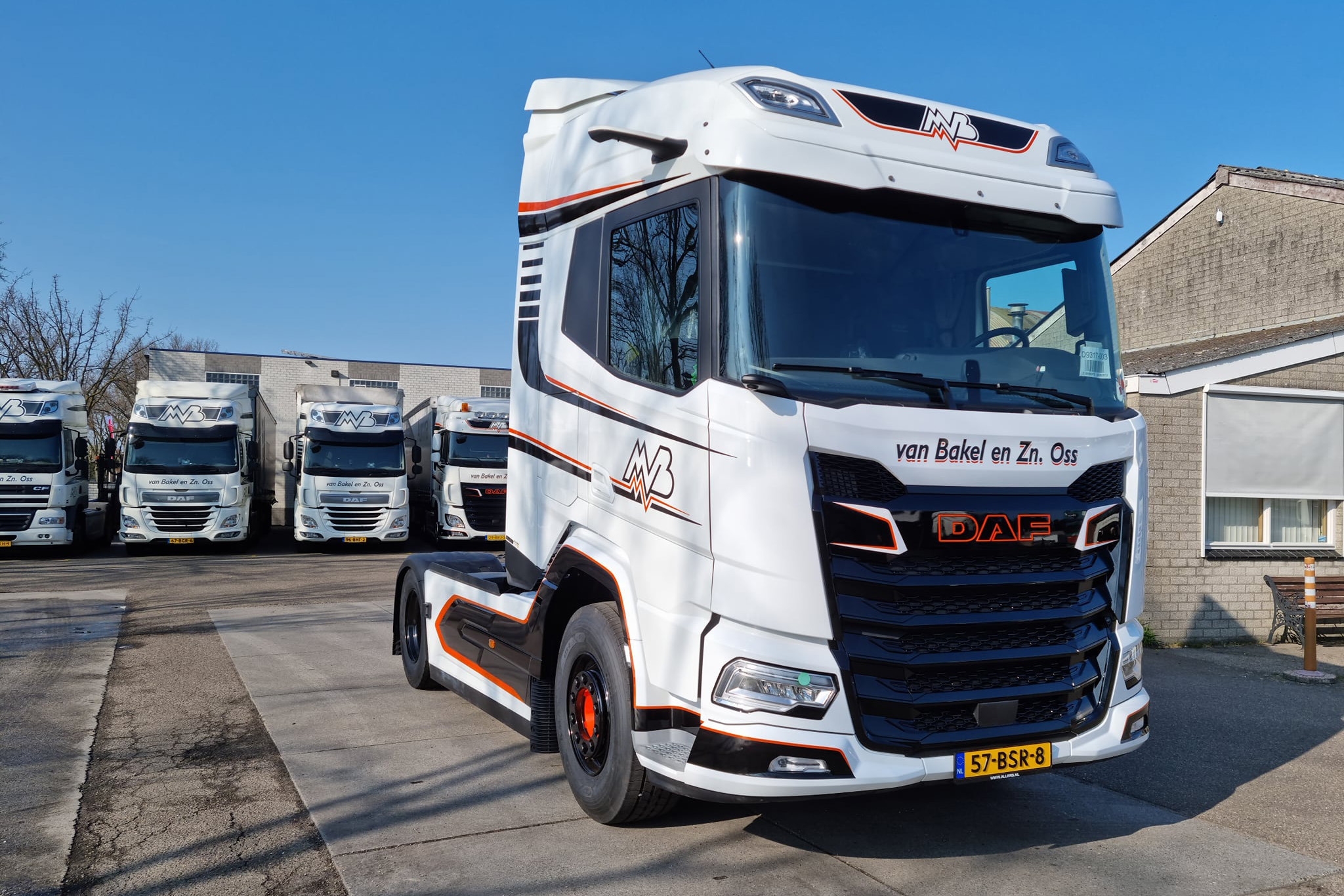De New Generation DAF (NGD) XF valt al op door zijn strakke design. Van Bakel en Zn. Transporten BV. in Oss heeft dat nog eens extra geaccentueerd met de eigen bedrijfsbelettering en kleurstelling. De aankleding sluit naadloos aan op de vormgeving van de cabine. Het is de eerste NGD XF in de regio Oss en recent afgeleverd door DAF dealer Allers Bedrijfswagens BV Venlo.