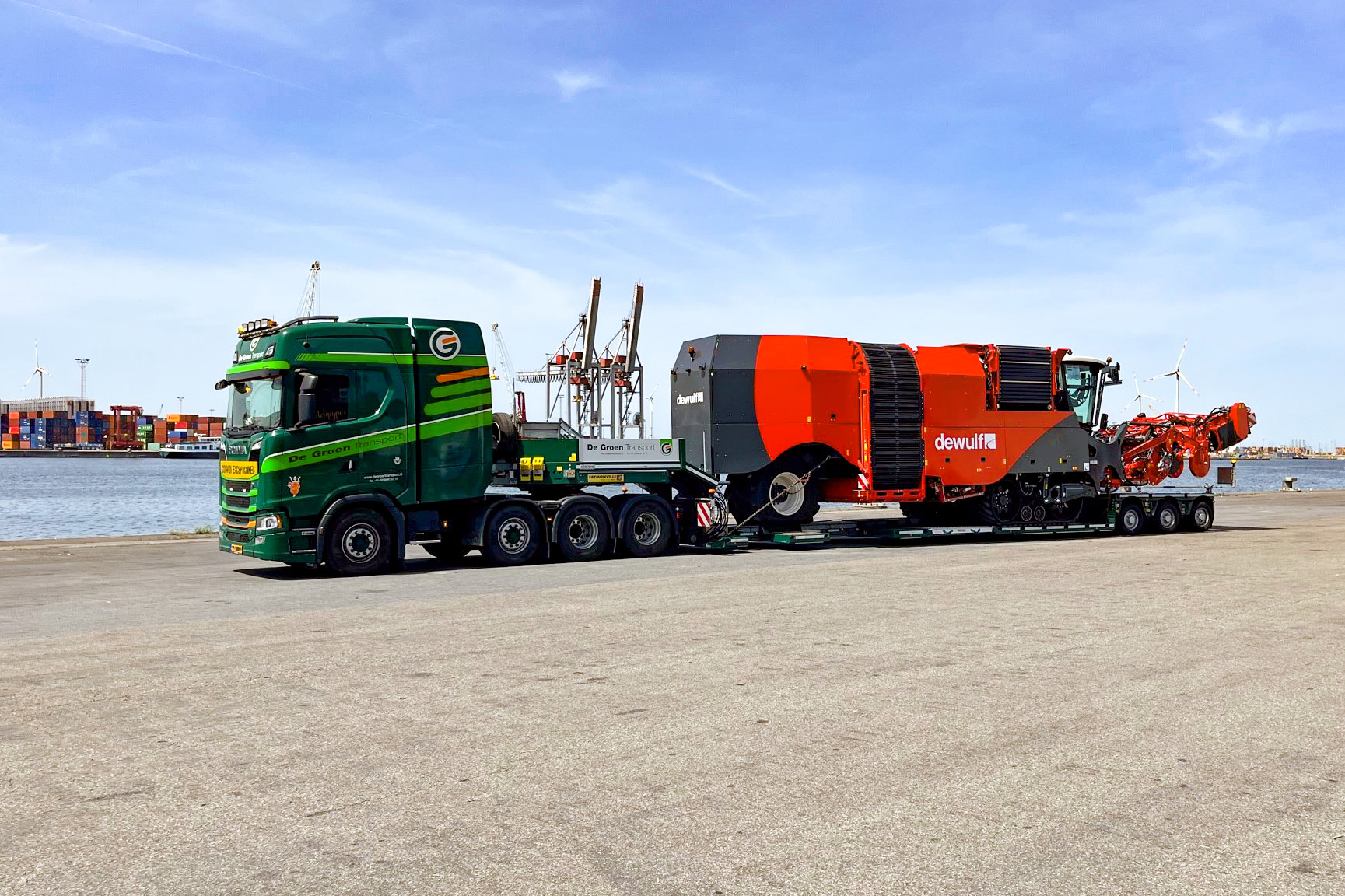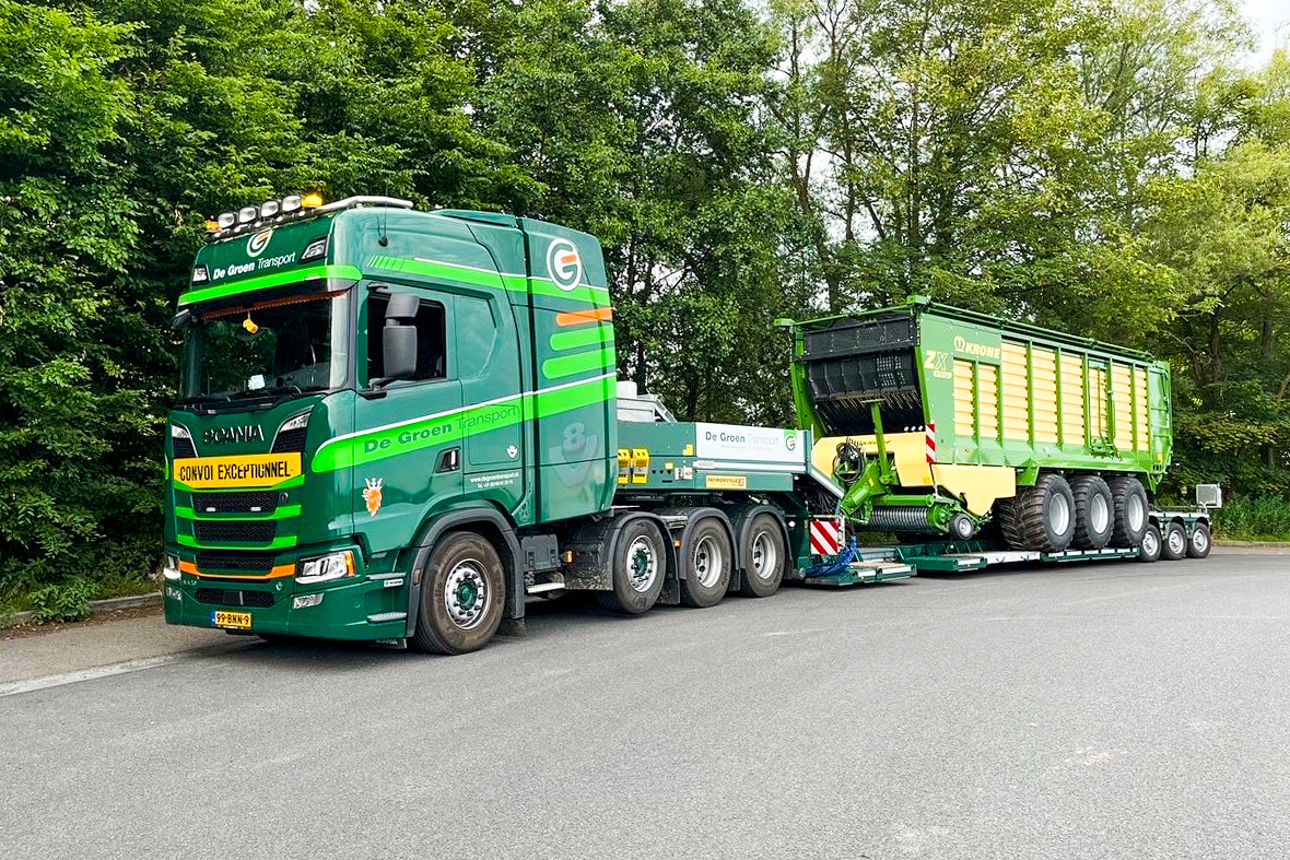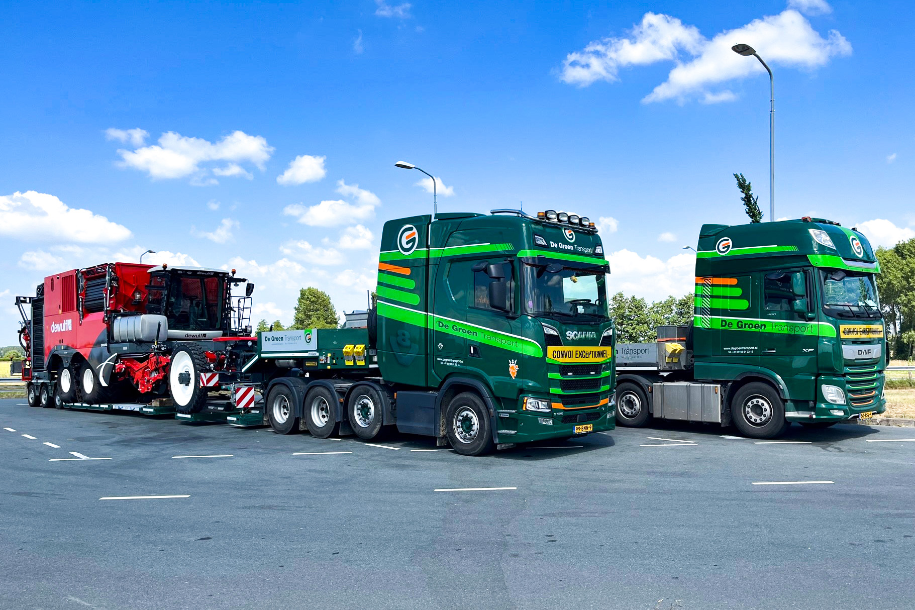 De Groen Transport is een bekende naam in het transport van landbouwmachines. Onlangs namen ze een nieuwe Faymonville dieplader in gebruik. De nieuwe 3-assige dieplader van Faymonville beschikt over een deels verlaagde laadvloer met hydraulische breedteverstelbaarheid.