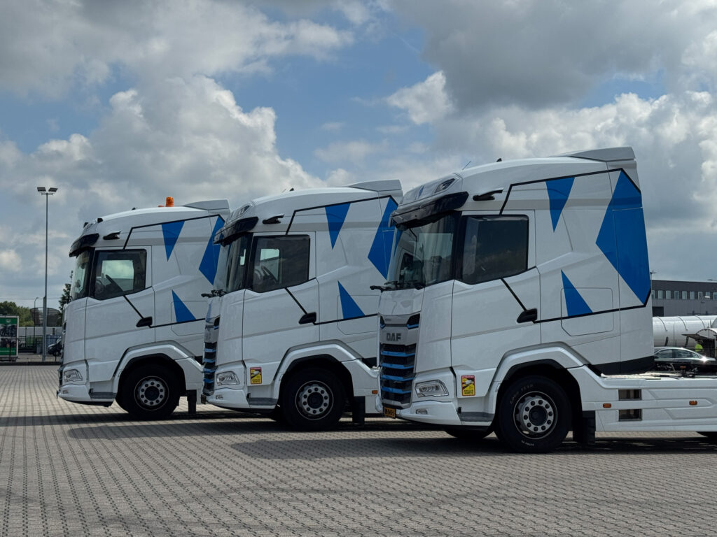 De eerste zes DAF XG 480 trekkers voorzien van de nieuwe huisstijl zijn inmiddels enkele weken in gebruik en de eerste resultaten zijn goed. Tjeerd Hofmeijer: ,,Wij sturen grotendeels op TCO en de vorige generatie XG scoorde vooral qua brandstofverbruik al duidelijk beter dan de XF Super Space Cabs die we ook nog hebben lopen. En de eerste resultaten van de nieuwe generatie (ModelYear’25) laten zien dat het nog zuiniger kan. Verder kiezen we bewust voor de 480 pk motor voor alle typen zodat we maximaal flexibel zijn. Nationaal hebben we die pk’s misschien niet altijd nodig maar internationaal wel. Zo kunnen we elke auto overal voor inzetten. Daarnaast hebben we vanuit het verleden al gezien dat we met deze 480 pk trucks zuiniger zijn dan met trucks met minder vermogen.”