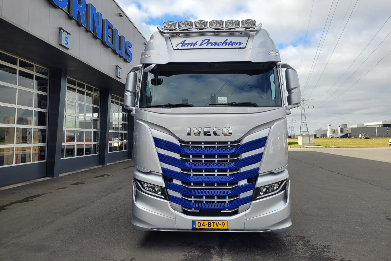 Recentelijk heeft Arnold Mellema Transport een nieuwe Iveco S-Way in gebruik genomen. De Iveco is af fabriek in de metallic grijze kleur geleverd en heeft een Cursor 13 motor met 530pk.
