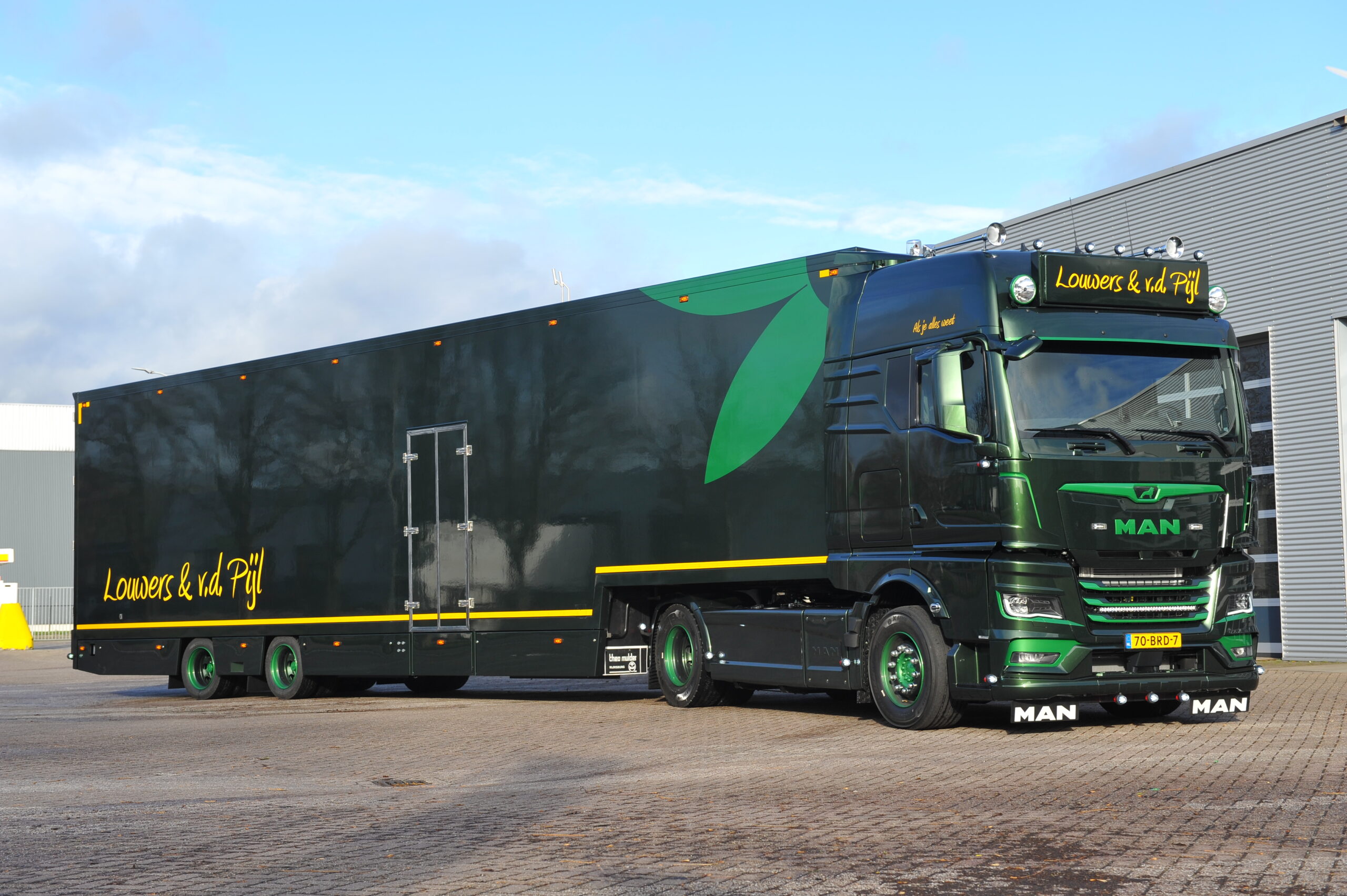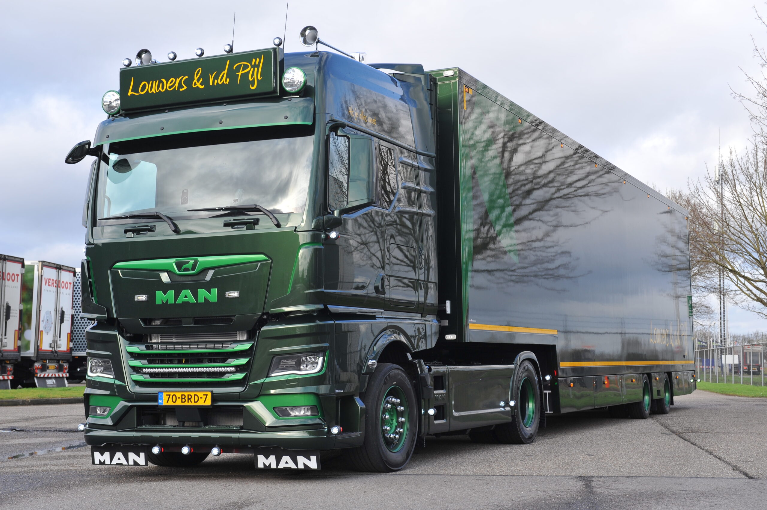 De nieuwe MAN is de eerste uit een serie van drie. Deze TGX is volledig luchtgeveerd en heeft een motor die 510 pk levert. Dat standkachel en airco onopvallend geïntegreerd zijn, ervaart het bedrijf als een pre. Duidelijk is ook dat Louwers & Van der Pijl het nuttige met het aangename wil verenigen. Dat betekent leren stoelen en een met leer bekleed stuurwiel. Houten afwerklijsten en natuurlijk is de nieuwe MAN rondom voorzien van LED-verlichting met de voor trucks unieke automatische grootlichtassistent. De allerlaatste stand van techniek qua veiligheid is aan boord, inclusief de nieuwste rijbaanwissel- en dodehoek-assistent.