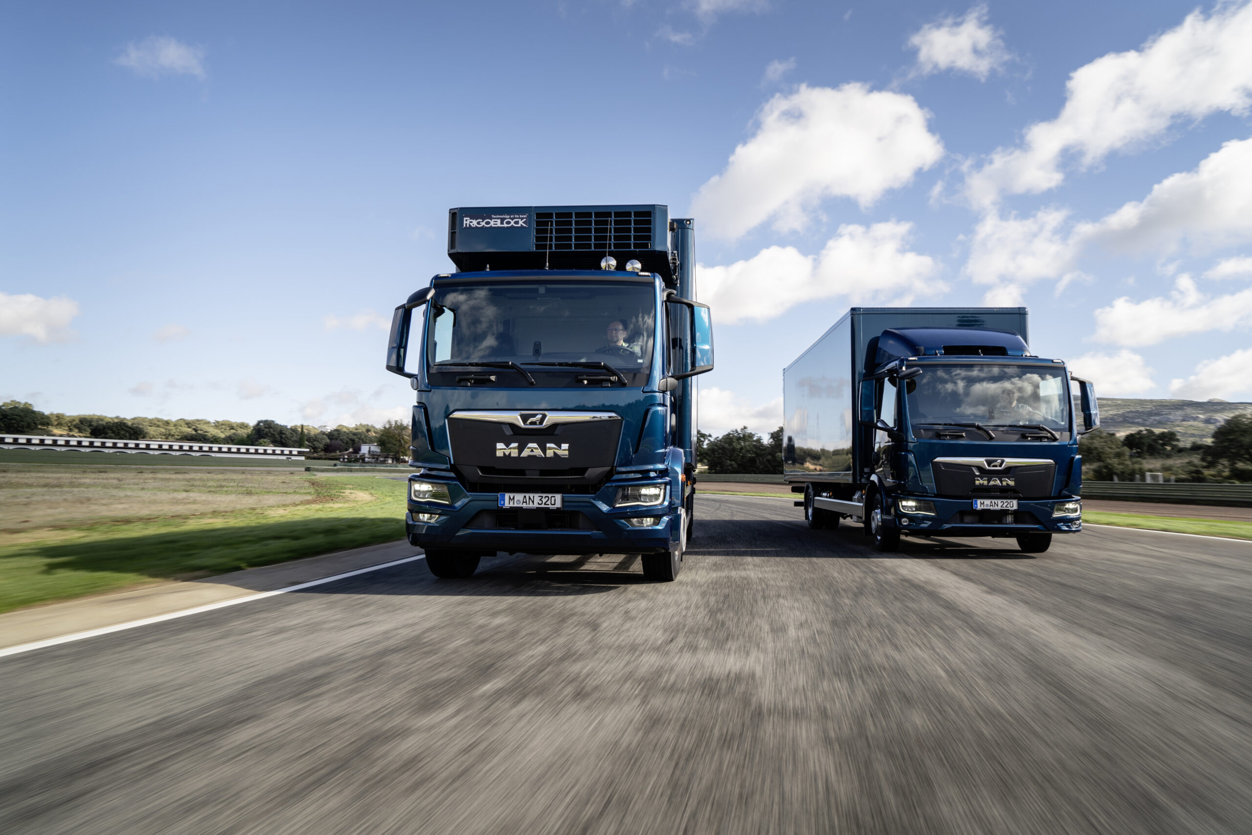 - Twee nieuwe MAN’s voor distributie: MAN TGL (rechts) en MAN TGM (links).
