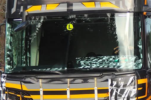 Ook in het interieur lijken de nodige veranderingen te zijn doorgevoerd. Bij eerdere testmodellen was nog een dashboard te zien dat sterk leek op het huidige ontwerp. Maar bij de geel-zwarte versies is nu het hele dashboard gecamoufleerd. Dat wijst erop dat ook binnenin iets nieuws op komst is. Op basis van de contouren vermoeden we dat vooral het deel voor de chauffeur minder afgerond is dan voorheen. Het dashboard aan de bijrijderskant toont opvallend laag, een beetje zoals we dat bij de nieuwe generaties DAF’s kennen. Mogelijk speelt Scania hiermee alvast in op de strengere eisen voor direct zicht, die over een paar jaar in Europa van kracht worden.
