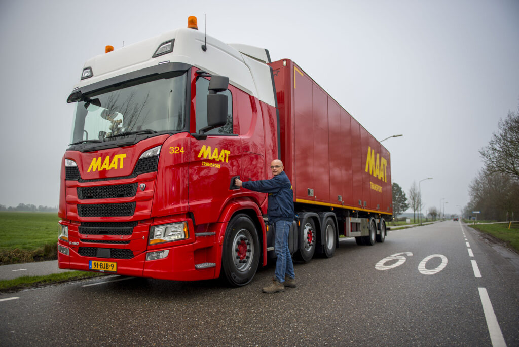 Normaal gesproken loopt directeur Arjan Maat, van het gelijknamige transportbedrijf uit Alblasserdam, niet voorop bij aankoop van een geheel nieuw model truck. Maar de aantrekkingskracht van de New Generation Scania won het deze keer. “We waren in de markt voor een nieuwe auto en ik vond dat ik deze niet kon laten staan.” Het werd een R450 met een gestuurde optrekbare voorloopas.