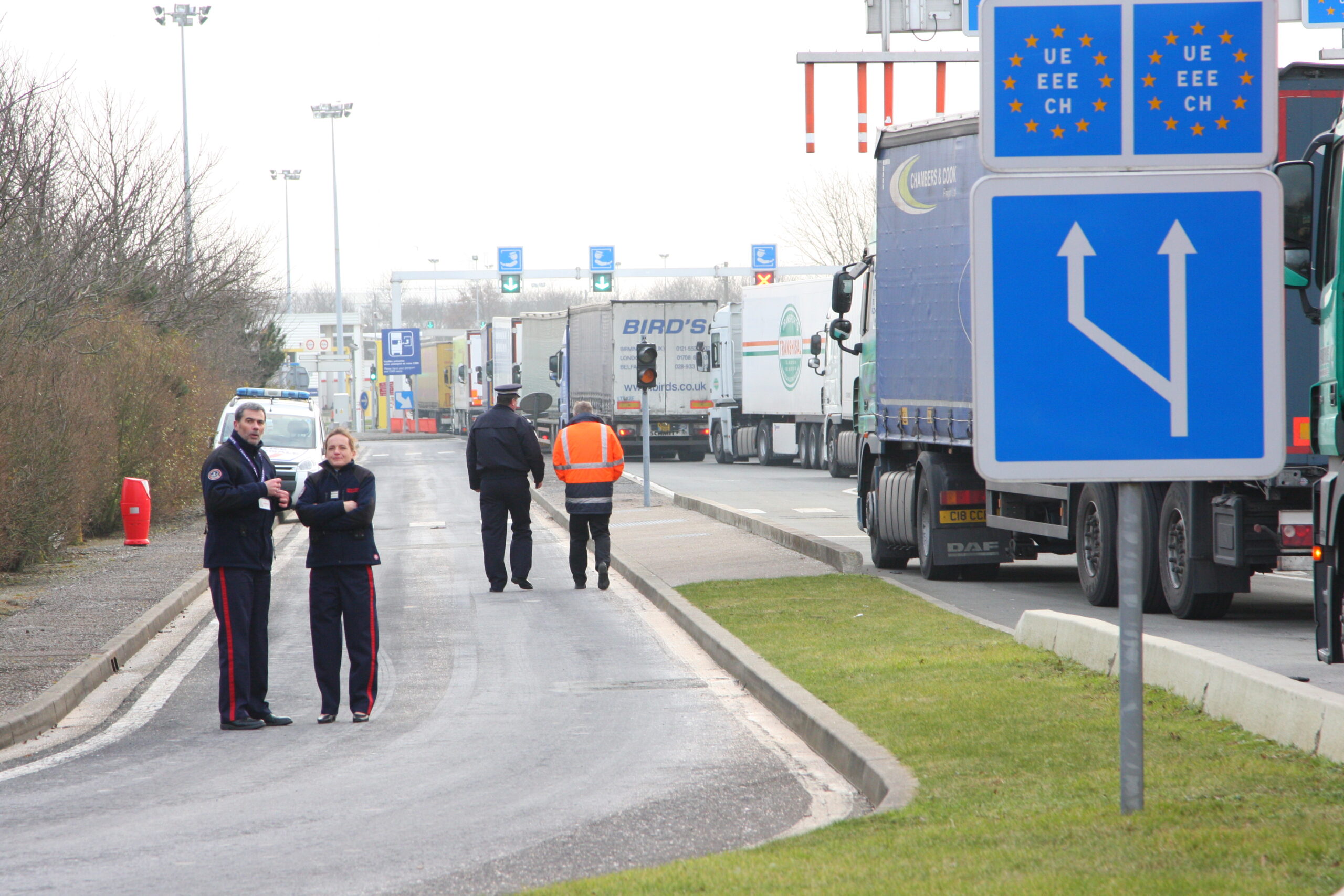 Ook aan Engelse zijde is er vertraging geweest. Vooralsnog waren er geen plannen om Operation Stack in gang te zetten. Hierbij wordt een deel van de snelweg M20 als mijlenlange truck-parking ingericht, maar daartoe lijkt nog geen noodzaak.