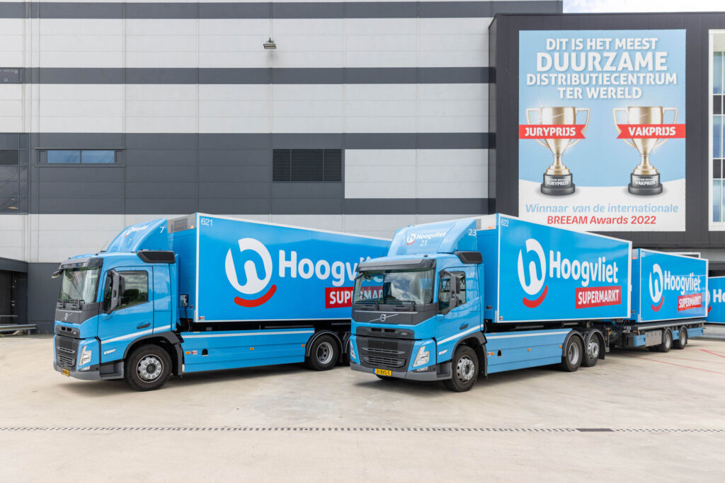 Supermarktketen Hoogvliet heeft zijn vloot vernieuwd met Volvo FM Electrics en Volvo FM bakwagen-aanhangercombinaties. De vijftien nieuwe Volvo FM’s worden ingezet om supermarkten te bevoorraden. De vrachtwagens zijn geleverd door Volvo Group Truck Center.