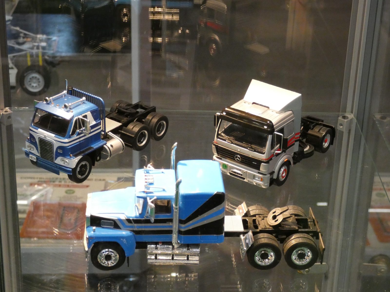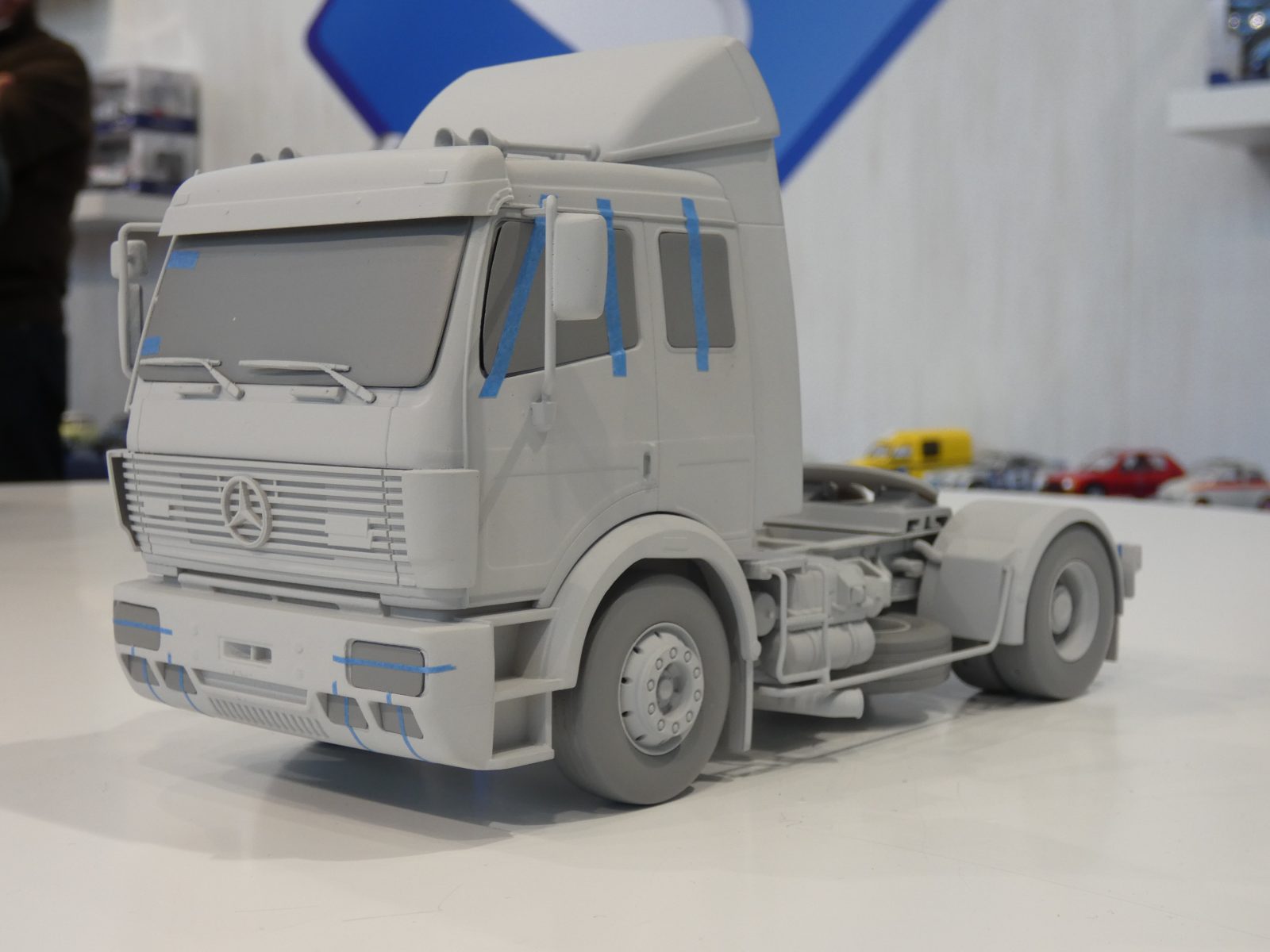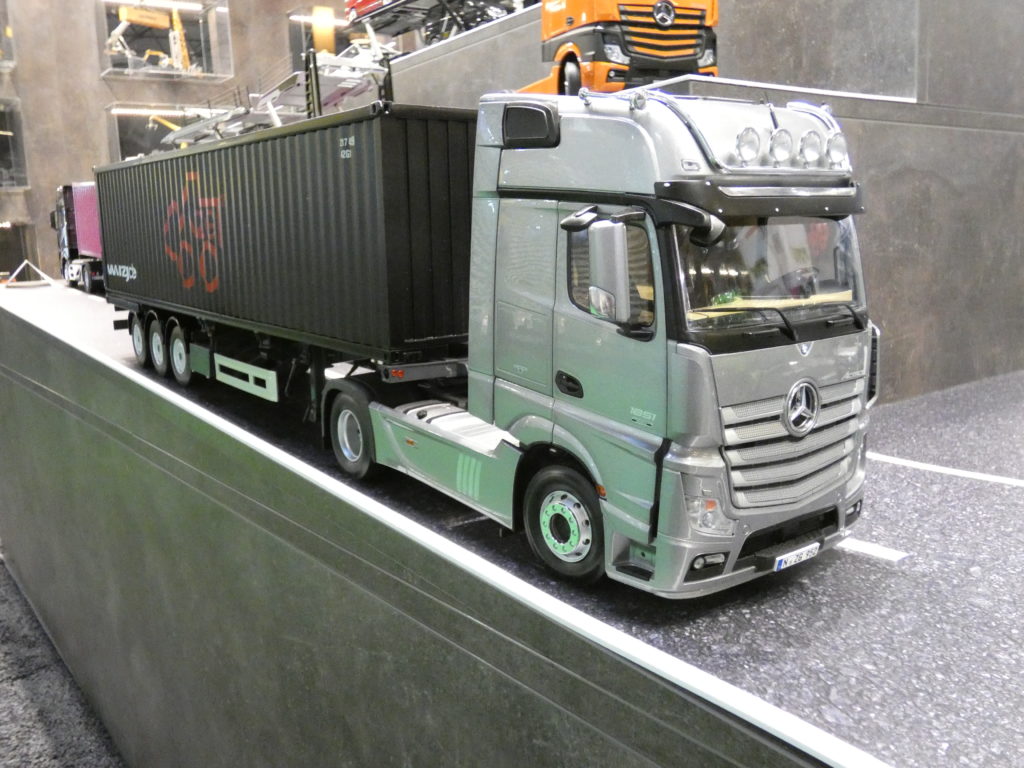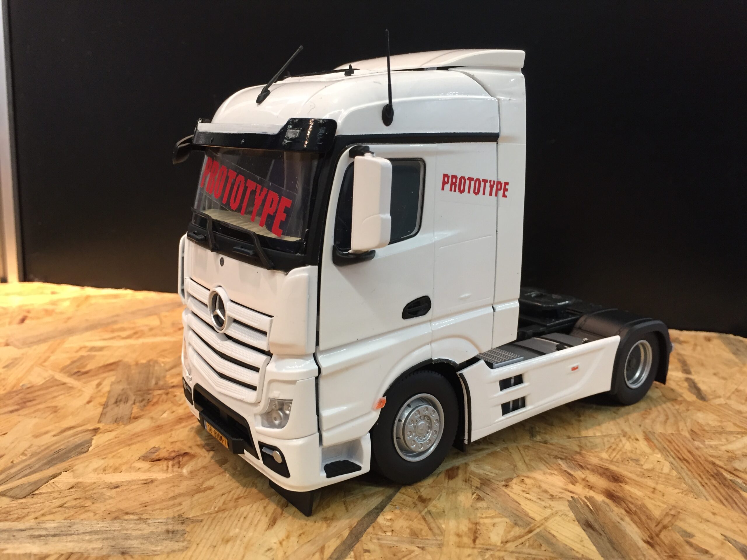 Geheel nieuw zijn trucks in de schaal 1:32, normaal gebruikelijk voor landbouwvoertuigen. MarGe Models uit Nederland heeft naast de Volvo FH nu ook diverse Pacton opleggers. Daarnaast stond in de vitrine een prototype van de Mercedes-Benz Actros trekker. Die komt er in drie cabinevarianten en als 4×2 of 6×2.