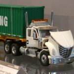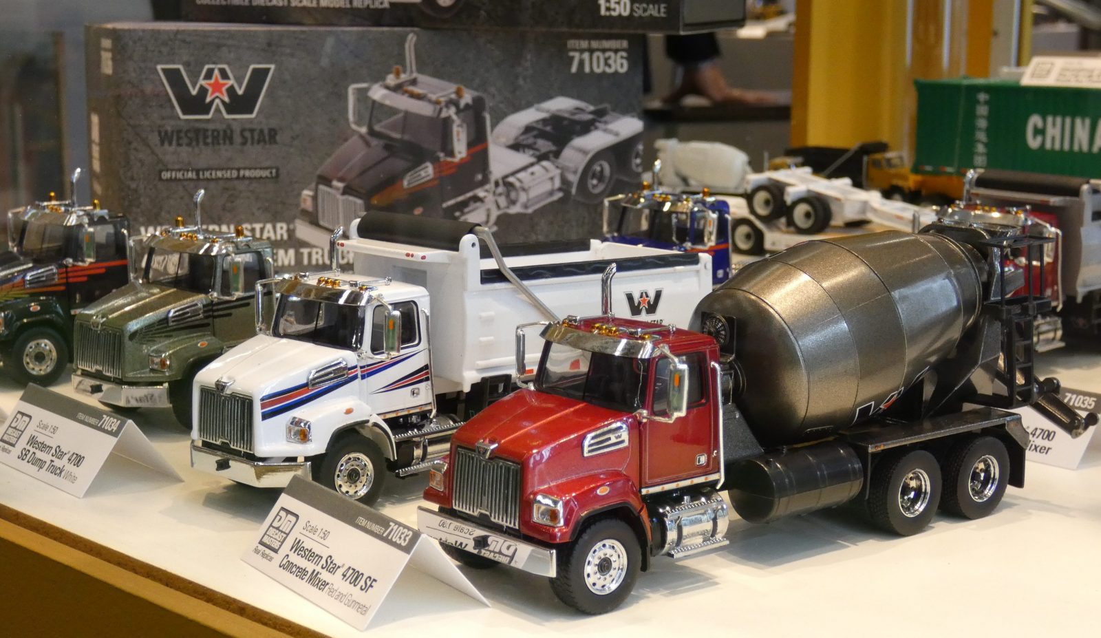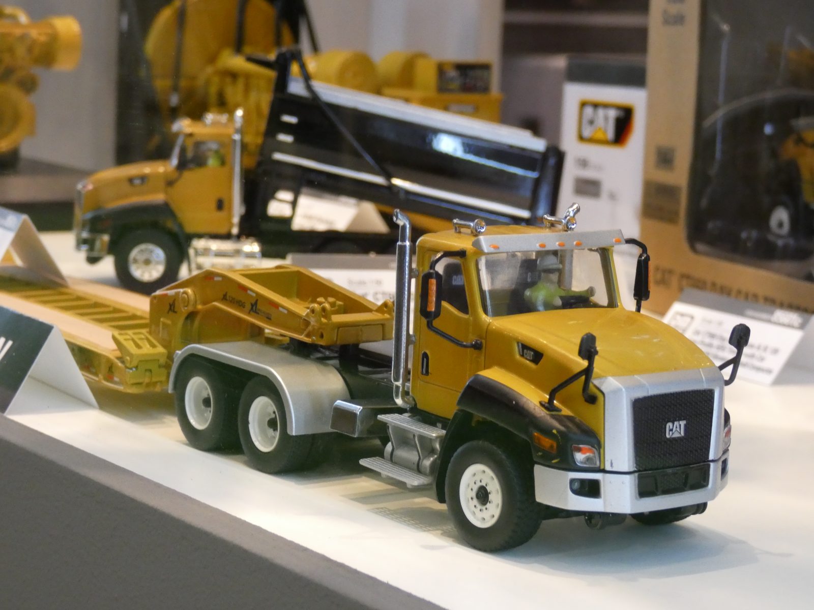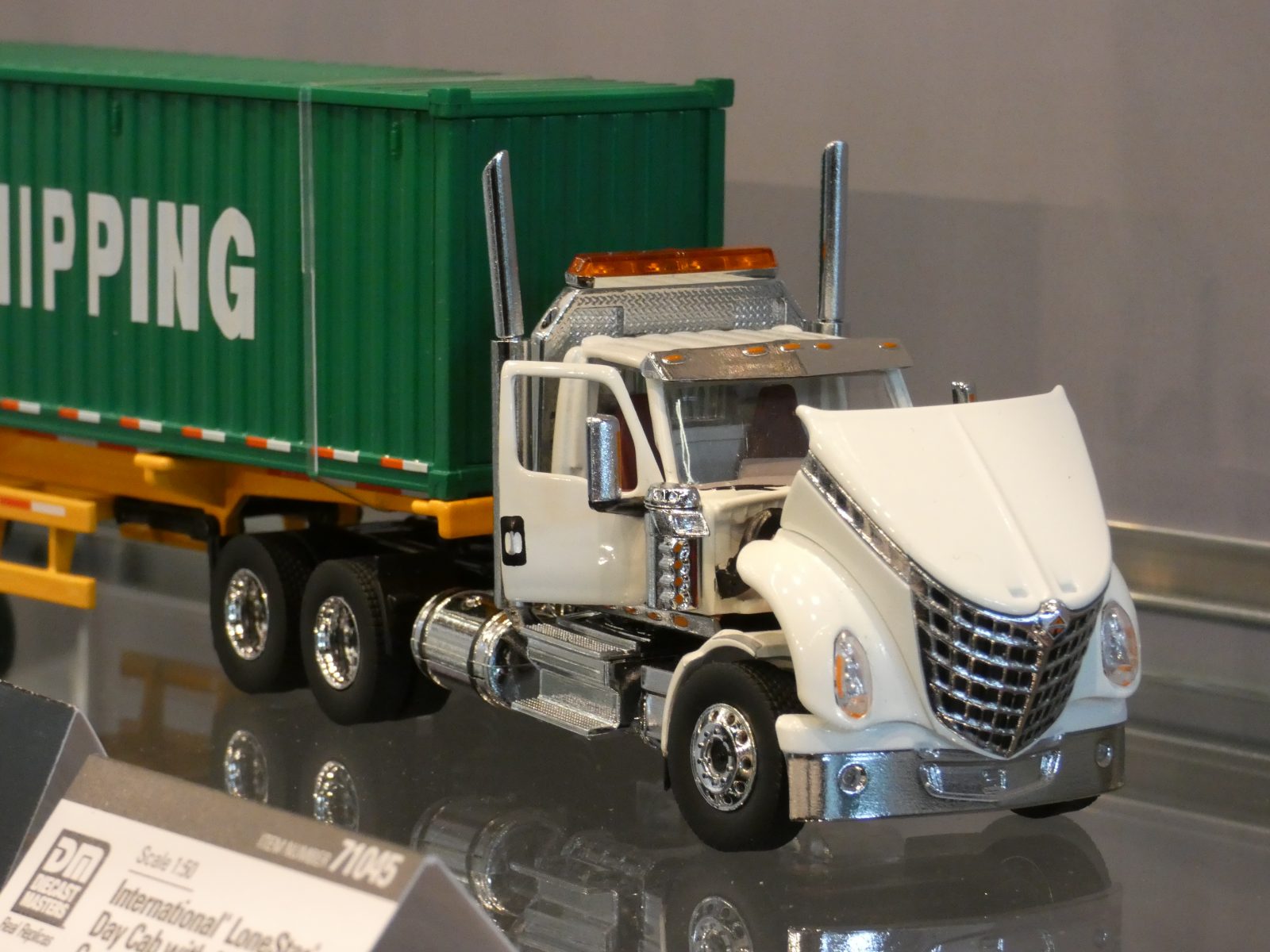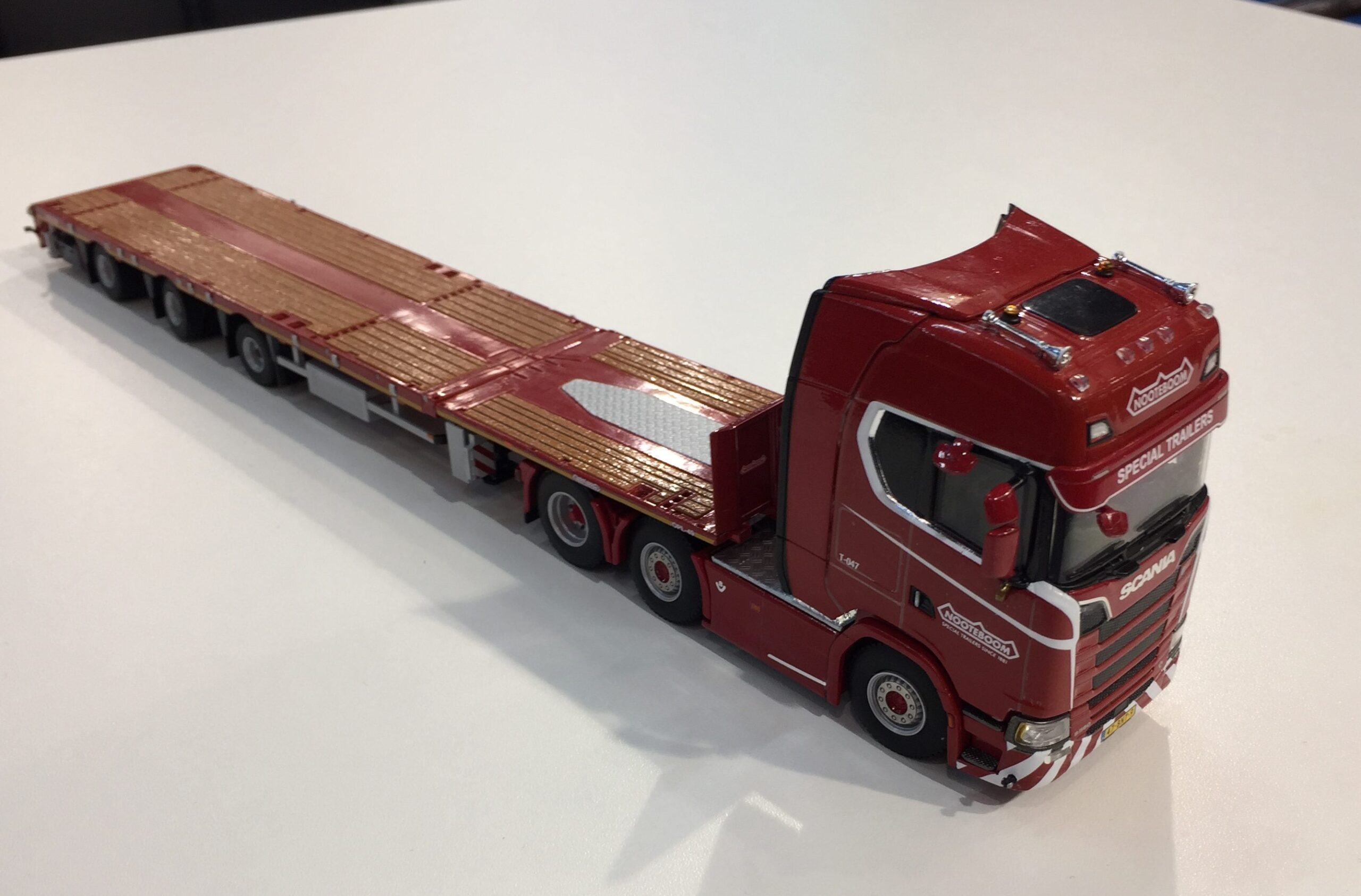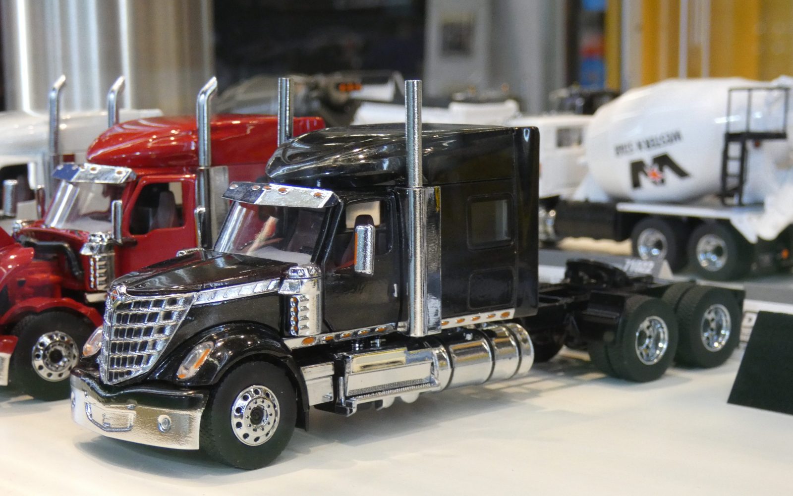 De gekende verzamelschaal voor vrachtautomodellen is natuurlijk 1:50 met merken als Tekno en WSI. Die laatste was ook op de beurs en toonde daar onder meer twee nieuwe Nooteboom opleggers. Liefhebbers van Amerikaanse trucks kunnen hun hart ophalen bij Diecast Masters want deze fabrikant van nagenoeg alle machines van Caterpillar brengt een hele lijn trucks met onder meer de Freightliner Cascadia en International Lonestar in diverse kleuren en uitvoeringen.