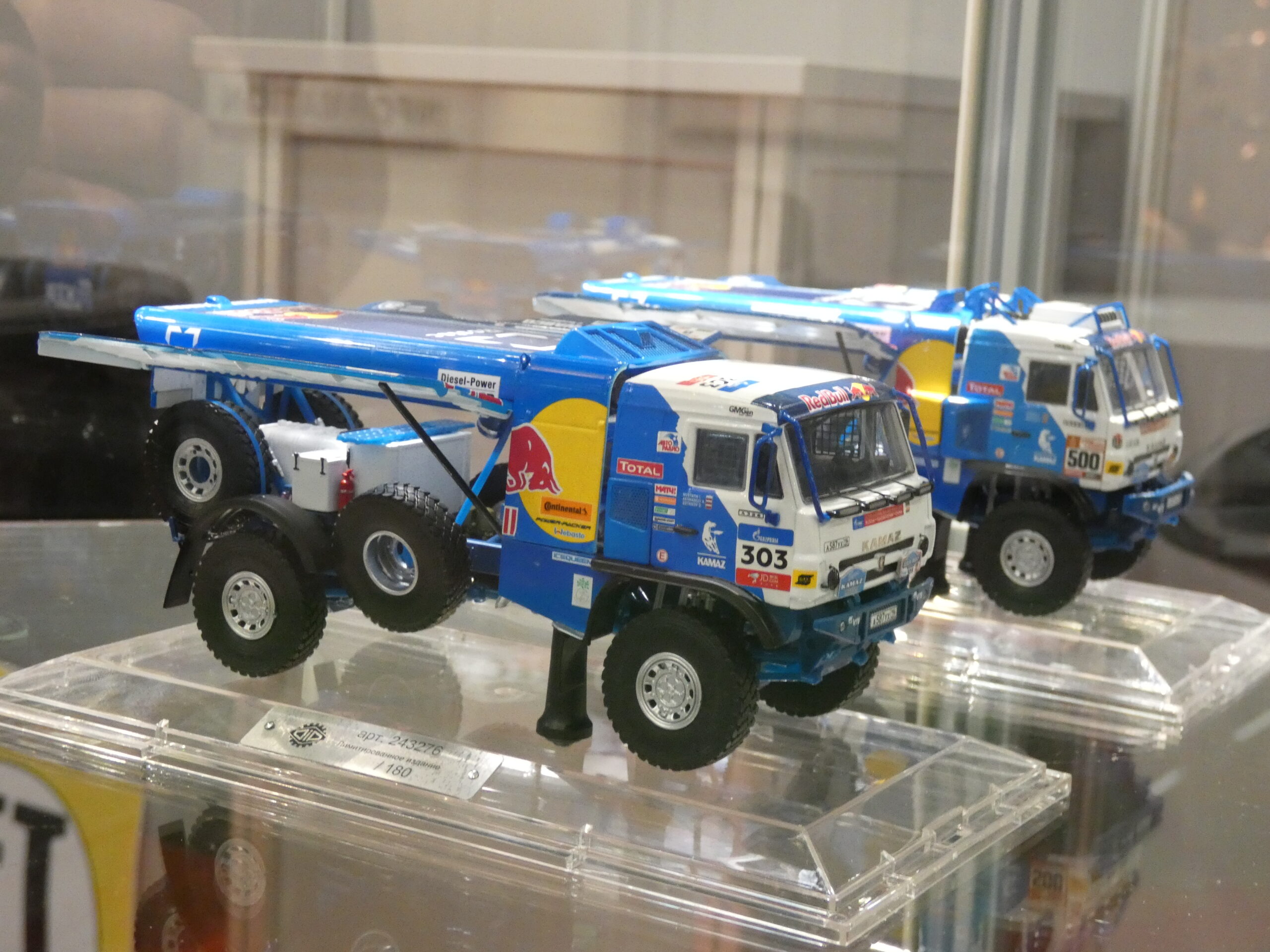 Het Russische DiP Models toonde twee Kamaz Dakar-trucks in 1:43. Naast die moderne rallymonsters maakt DiP overigens nog de nodige klassieke Russische vrachtwagens.