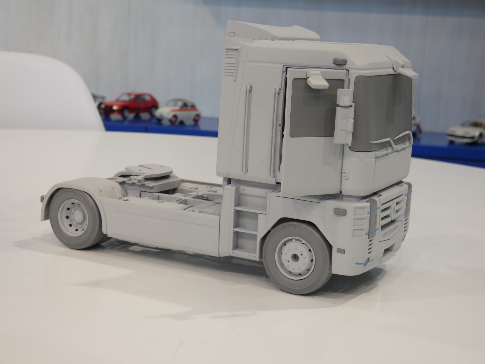Nog een stapje groter is schaal 1:24 bekend van de bouwdozen van onder meer Italeri. Die hebben nu ook de Volvo FH4 als kit. Wie geen tijd heeft om zo’n kit in elkaar te zetten, kan straks terecht bij Solido dat in Neurenberg twee kant en klare trekkers voorstelde, een Renault Magnum en een Mercedes-Benz SK.