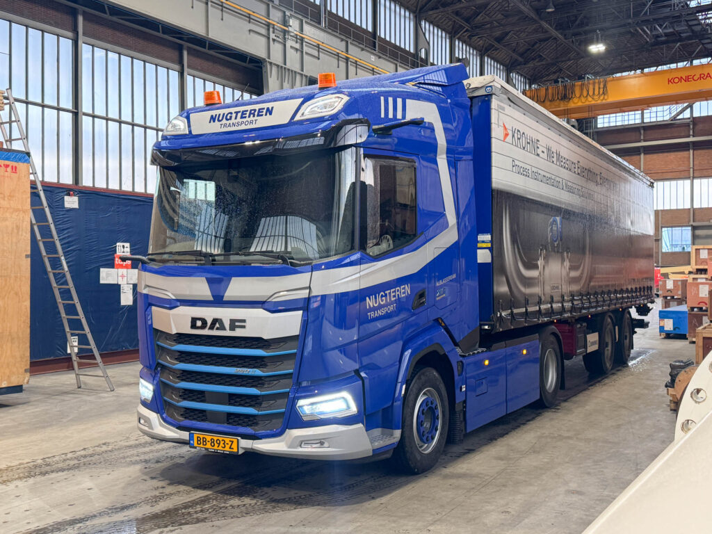 Afgelopen vrijdag werd door DAF-dealer BEST Trucks Barendrecht de eerste elektrische DAF XF afgeleverd bij Nugteren Transport in Alblasserdam. Het Zuid-Hollandse bedrijf startte in 1981 met een gebruikte DAF-truck waarmee bouwmaterialen werden vervoerd. In de volgende 45 jaar groeide de firma uit tot een compleet logistiek dienstverlener. Nugteren Transport is specialist in het zeewaardig verpakken van machines, halffabricaten en onderdelen alsmede het speciaal transport daarvan.