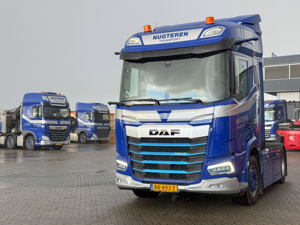 Onlangs nog won de DAF XD en XF electric de titel International Truck of the Year 2026. De DAF XF350 electric 4×2 trekker die door Nugteren Transport in gebruik wordt genomen is voorzien van de Paccar EX-D2 elektromotor die een vermogen ontwikkelt van 350 kW ofwel 480 pk. De vijf accupakketten aan het chassis hebben een gezamenlijke capaciteit van 525 kWh, goed voor een actieradius tot 500 kilometer. Hij zal ingezet worden voor distributievervoer voor een vaste opdrachtgever. Wim Nugteren: ,,De trekker is weliswaar wat zwaarder maar dat is geen probleem. We vervoeren er voornamelijk volumegoederen mee. Daarnaast gaat hij vaste routes rijden van 200 á 300 kilometer per dag wat goed moet kunnen met deze actieradius. We hebben slechts een 30 kWh lader maar wel de hele nacht om de accu’s weer vol te krijgen.”