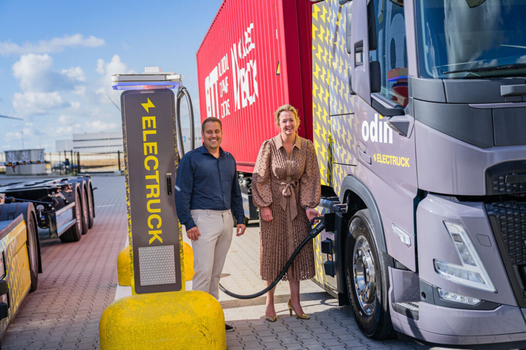 Logistiek dienstverlener Odin heeft op de Maasvlakte zijn eerste laadstation voor elektrische vrachtwagens in gebruik genomen. Bijna honderd gasten woonden de feestelijke opening bij, waarbij Berte Simons de eerste truck aan de lader koppelde en zo officieel het startsein gaf.