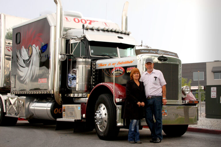Ze leerden elkaar kennen op drie huizen afstand in Nijmegen en wonen – als ze niet aan het rijden zijn – al vele jaren in West Haven, Utah. Maar in hun enorme ‘sleeper’ is het ook prima vertoeven. Alle gemakken zijn aan boord van douche tot aanrecht en satelliet tv.