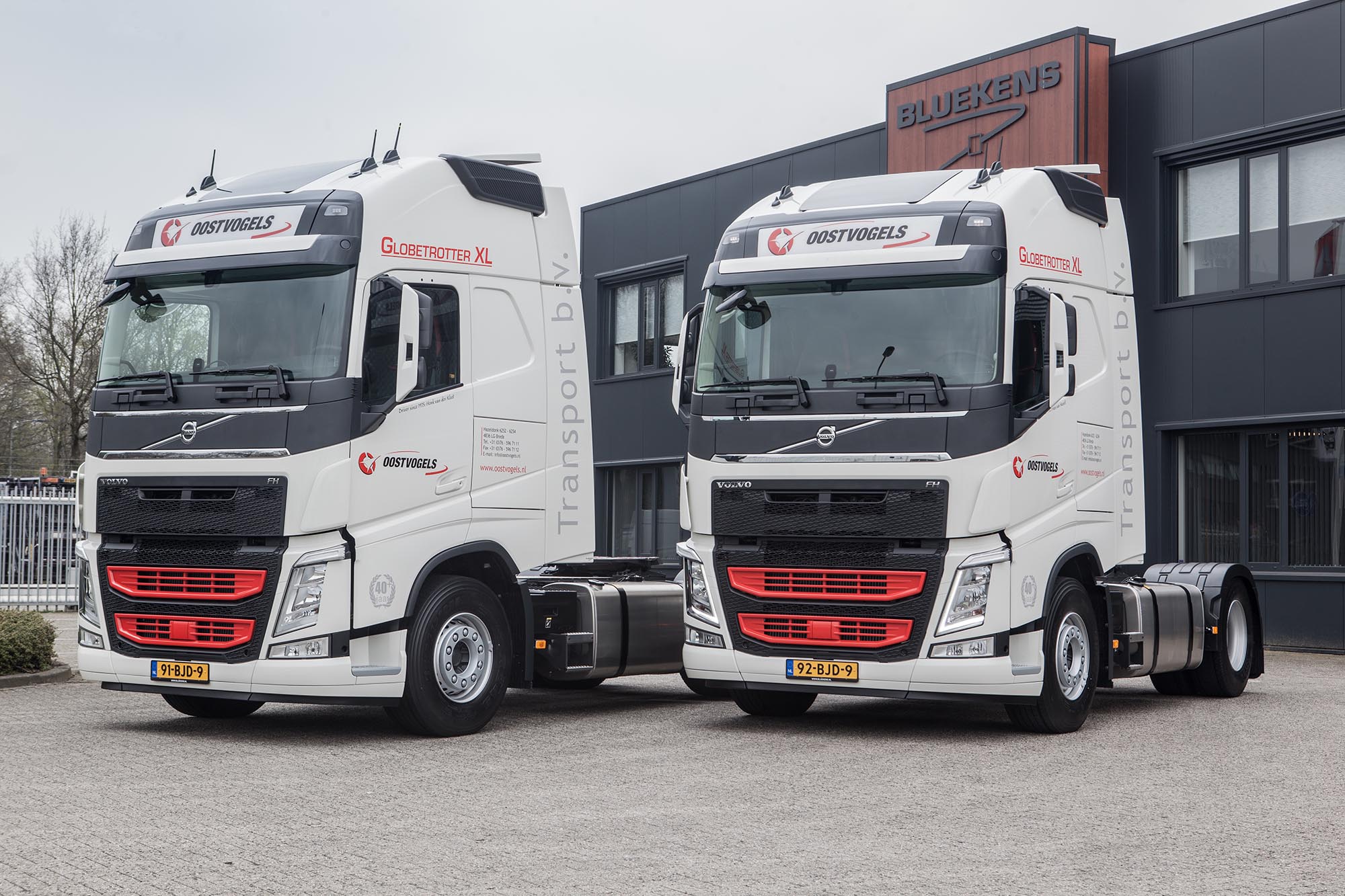 De twee jubilarissen rijden sinds 1975 en 1976 voor Oostvogels in het internationaal transport, met name naar Italië en Frankrijk. Ook de komende jaren staat hun navigatie hierop ingesteld. De nieuwe Volvo FH-trekkers zijn om die reden uitgerust met een Globetrotter XL-cabine en diverse veiligheid en comfort verhogende attributen. Het interieur van de trucks werd verzorgd door Special Interior Dronten.