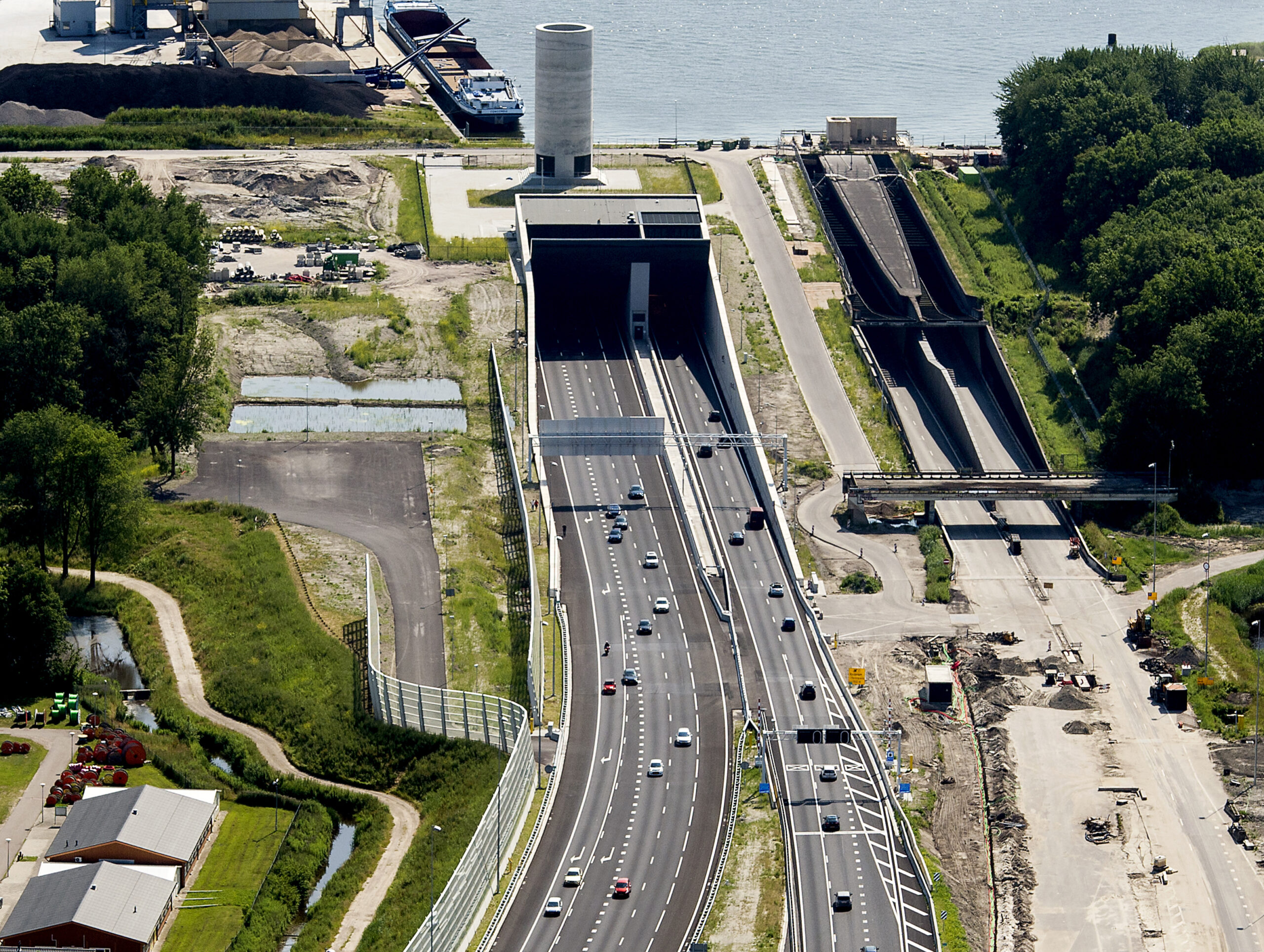 (Openingsfoto: de huidige situatie met de nieuwe Tweede Coentunnel in gebruik en de oude Coentunnel tijdelijk van het wegennet afgesloten. ANP)