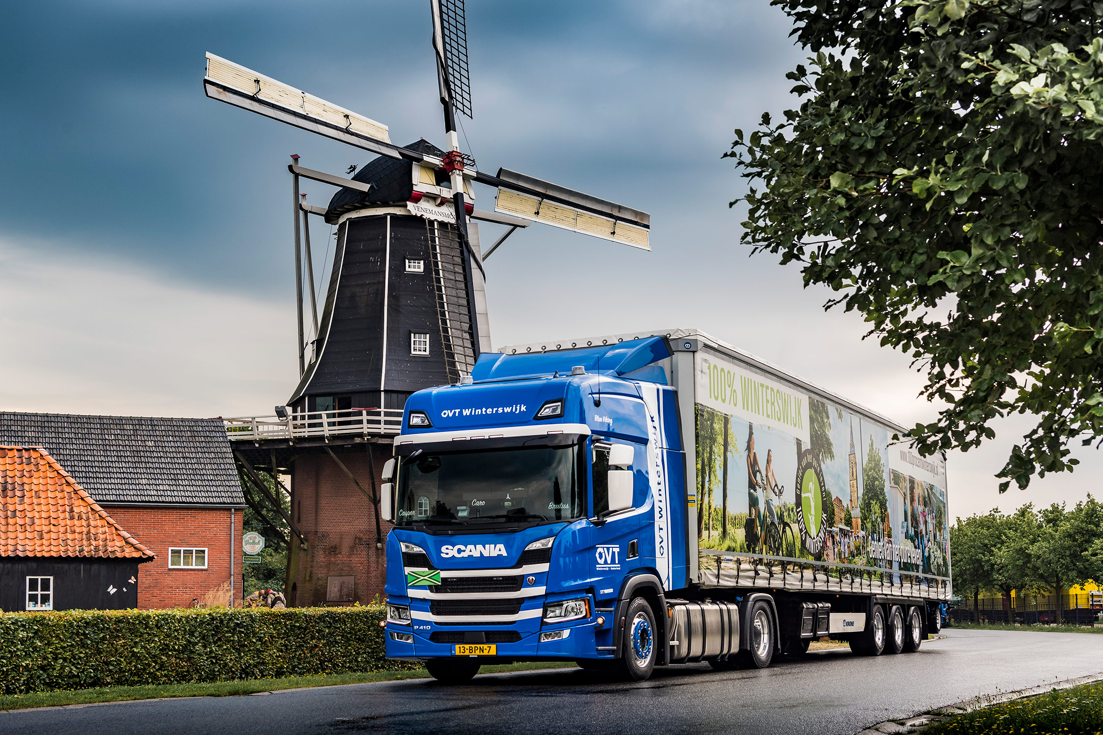 OVT in Winterswijk is van heel veel markten thuis en rijdt van planten en bomen tot speciaal- en volumetransport. Ook rijdt het bedrijf met afvalcontainers voor het afvoeren van restmaterialen en asbest. “Voor onze transportafdeling zochten wij een nieuwe trekker”, begint Olijslager het verhaal achter de Scania P410 met CP20H cabine zoals het officieel wordt aangeduid. “Wij willen naar een twee merkenbeleid en daarom hebben wij besloten dat wij in het vervolg voor de twee Zweedse merken gaan kiezen en de Scania reed er bij ons nog geen. Dit is dus de eerste Scania die wij op het erf krijgen.”