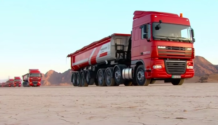 Met een vijftigtal DAF- en Kenworth trucks hieldt het bedrijf een waar ‘ballet’ ergens op een kale vlakte in de de woestijn. Veel informatie over het hoe en waarom van deze marketingstunt hebben we niet. Maar in dit geval geldt: gewoon kijken! Klik op de Youtube-link onder dit bericht.