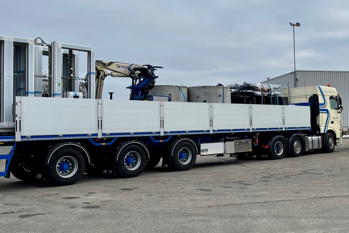 “De flexibel compartimenteerbare, gestuurde en duurzame kraantrailers zijn onmisbaar in onze transporttaken. We bezorgen er dagelijks bouwmaterialen mee aan aannemers én particulieren”, vertelt mede-eigenaar Frank Linders.