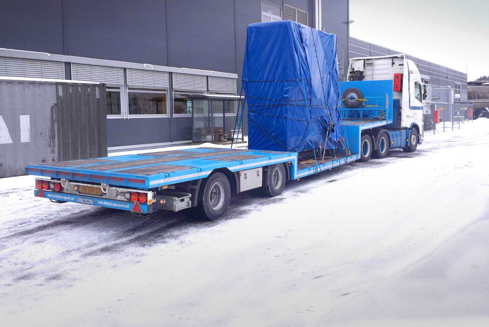 De twee-assige semi-dieplader werd door DKJ Transport speciaal besteld voor het vervoer van machines en overige grote ladingen.