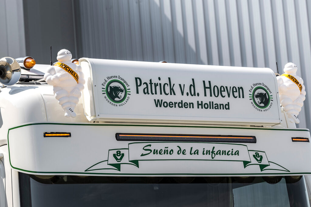 Uiteraard zijn de trucks rijk uitgerust. “Dat gaat nog wel iets verder dan alleen rondom luchtvering, retarder, ACC en LED-verlichting,” vertelt Patrick. “Bij ons telt de liefde voor de auto en sommige chauffeurs kozen voor een old skool look met een lichtbak, anderen weer voor de Zweedse look met bullbar en een Deense bumper. Maar weer geen lichtmetalen velgen: wij vinden in de kleur gespoten metalen wielen met een RVS ring erin toch mooier.”