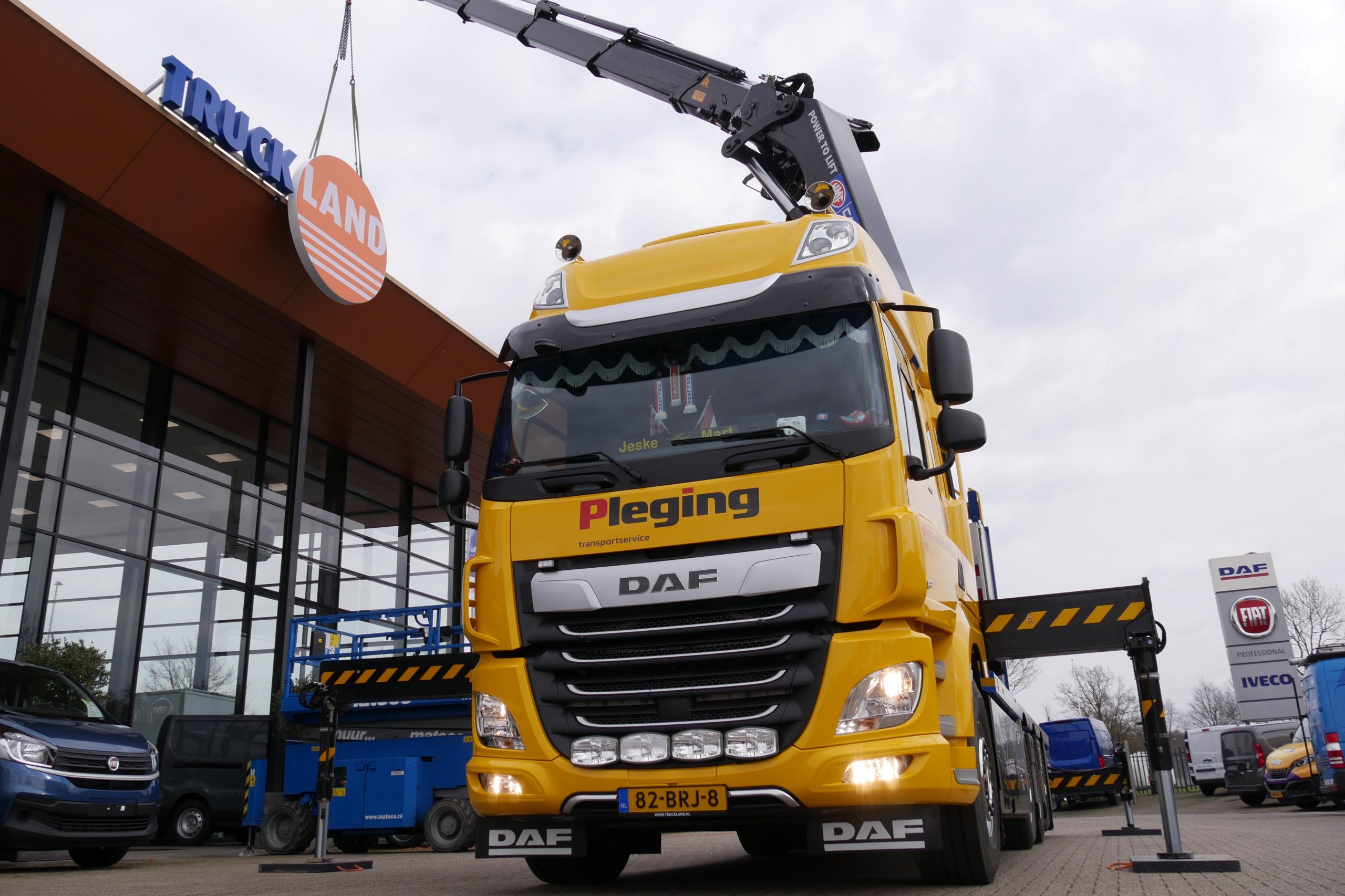 In het wagenpark van Pleging Transportservice B.V. rijden 18 DAF trucks. Pleging: “De ervaringen met DAF en de ondersteuning vanuit onze dealer Truckland Eindhoven zijn uitermate positief. De opbouw en aflevering van deze nieuwe DAF CF 480 FAQ is volgens planning verlopen. Het is heel fijn voor onze bedrijfsvoering als materieel op tijd beschikbaar is. De DAF CF 480 FAQ is dan ook al vanaf dag 1 volle bak aan het rijden. De prettige samenwerking met Truckland werd recent nogmaals benadrukt: de splinternieuwe DAF CF 480 FAQ met laadkraan is namelijk ingezet om de signing van Truckland Acht te vervangen.”