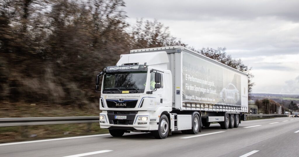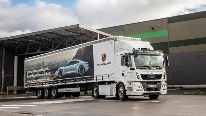 Porsche neemt in Stuttgart-Zuffenhausen een elektrisch aangedreven 32-tons MAN eTGM trekker in gebruik. Deze wordt ingezet voor de productielogistiek van Porsche, dat zich voorbereidt op de productie van zijn eerste elektrisch aangedreven model. Die staat dan ook levensgroot op de trailer afgebeeld. De inzet van de MAN eTGM is voor Porsche een belangrijke stap op weg naar de ‘Zero Impact Factory’.