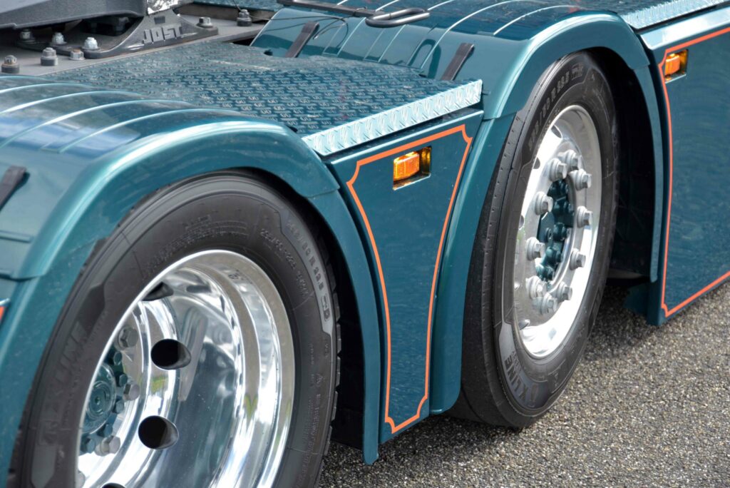 De fraaie trekker is uitgerust met de krachtigste Cursor 13 motor met 570 pk, zonder EGR. De buitenkant van de auto is helemaal af. Zo zijn er dichte zijskirts aangebracht, een aluminium tranenplaat afdichting en een speciale achterbumper. Achter op de cabine is een lichtbalk aangebracht en verder is er een slangenrek gemonteerd met een lichtbak. Ook de cabine is aangekleed, met een extra diepe zonneklep, hoekschildjes en een onderspoiler. Op het dak staat een grote lichtbak met verstralers, zwaailampen en een set luchthoorns. Om het plaatje compleet te maken zijn er glanzende Alcoa’s gemonteerd.