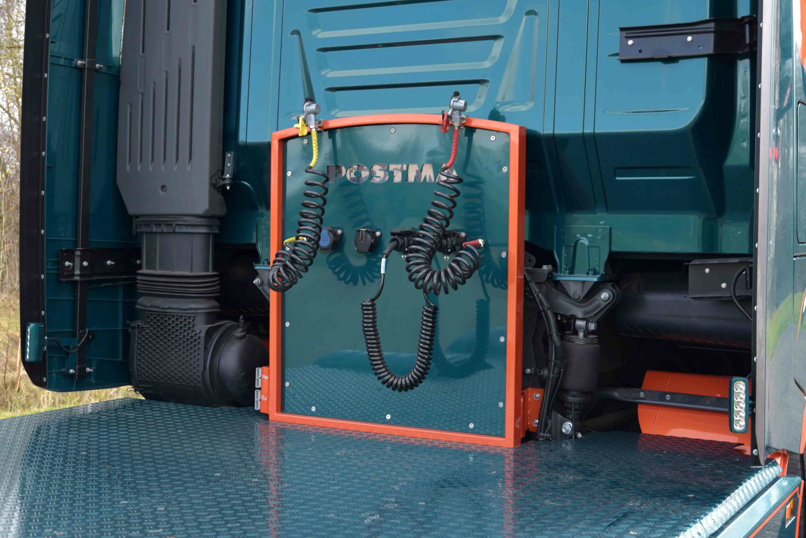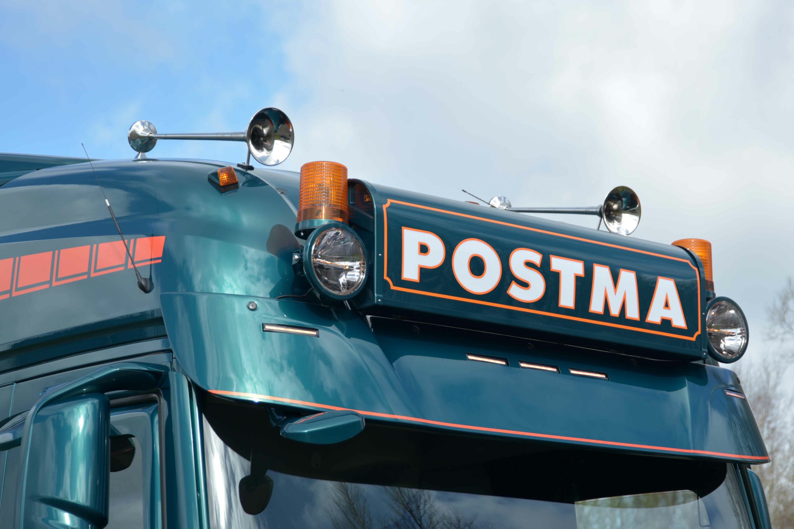Postma Transport heeft een eigen vloot van 20 trekkende eenheden, aangevuld met 10 vaste charters. Specialiteit van het bedrijf is het vervoer van landbouw- en bouwmachines in de Benelux, Duitsland, Oostenrijk en Denemarken. Al komen andere bestemmingen ook regelmatig voor. Het bedrijf heeft speciale voertuigen voor dit transport. Met wielkuipen, uitschuifbare opbouwen en extra lage vloerhoogtes kunnen ook grote machines vervoerd worden, tot 3,5 meter breedte. Vanwege dit specialisme werd er gekozen voor een lage schotelhoogte van 110 centimeter.