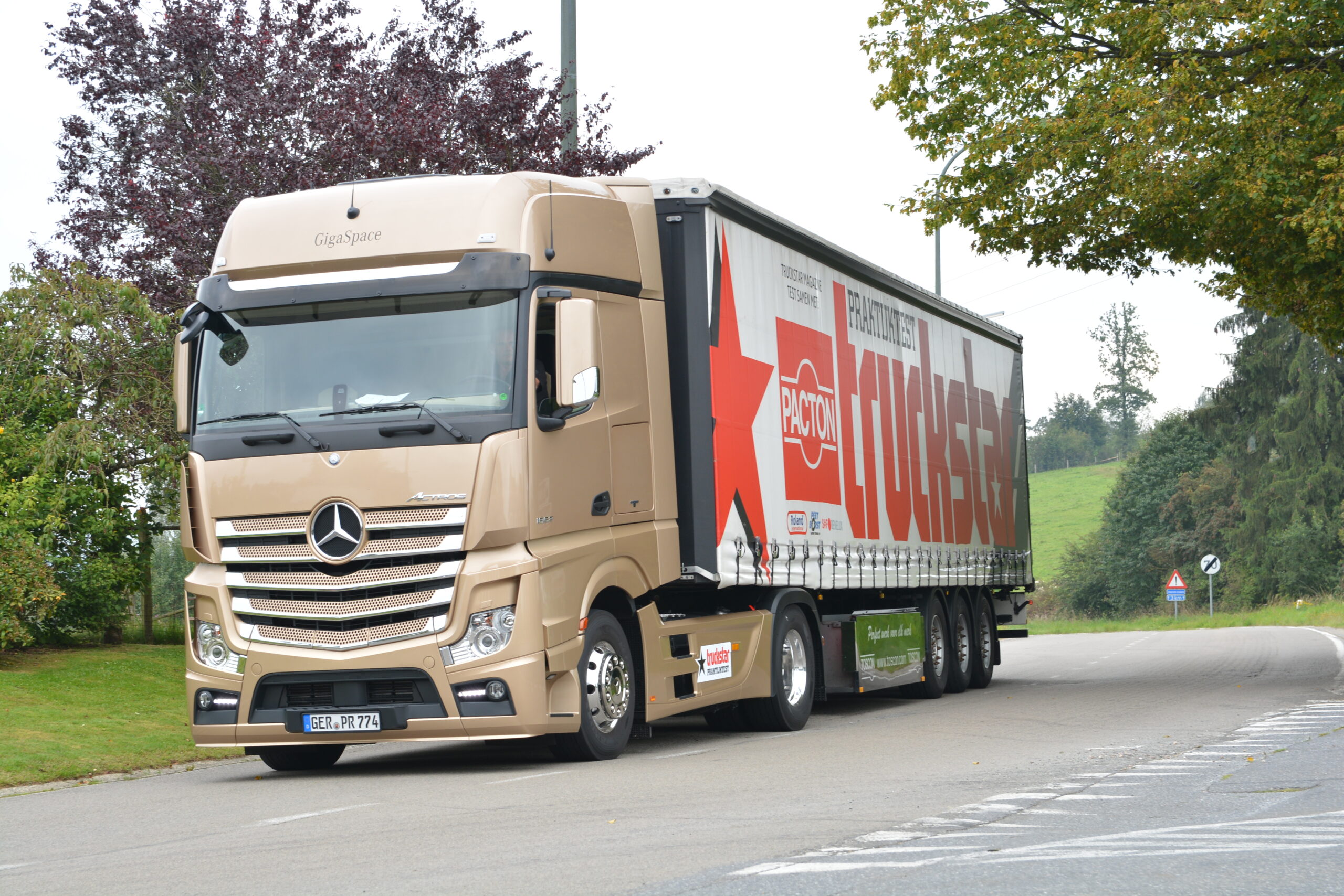 Met de introductie van de OM473 is het Euro 6-motorenprogramma Mercedes-Benz compleet. De auto die de fabriek in Stuttgart heeft afgevaardigd, is een champagnekleurige 1863 LS 4×2 trekker met GigaSpace-cabine en Style-Line interieurconcept. Dat laatste betekent dat de cabine is verfraaid met allerlei chroomaccenten, zowel van binnen als van buiten.