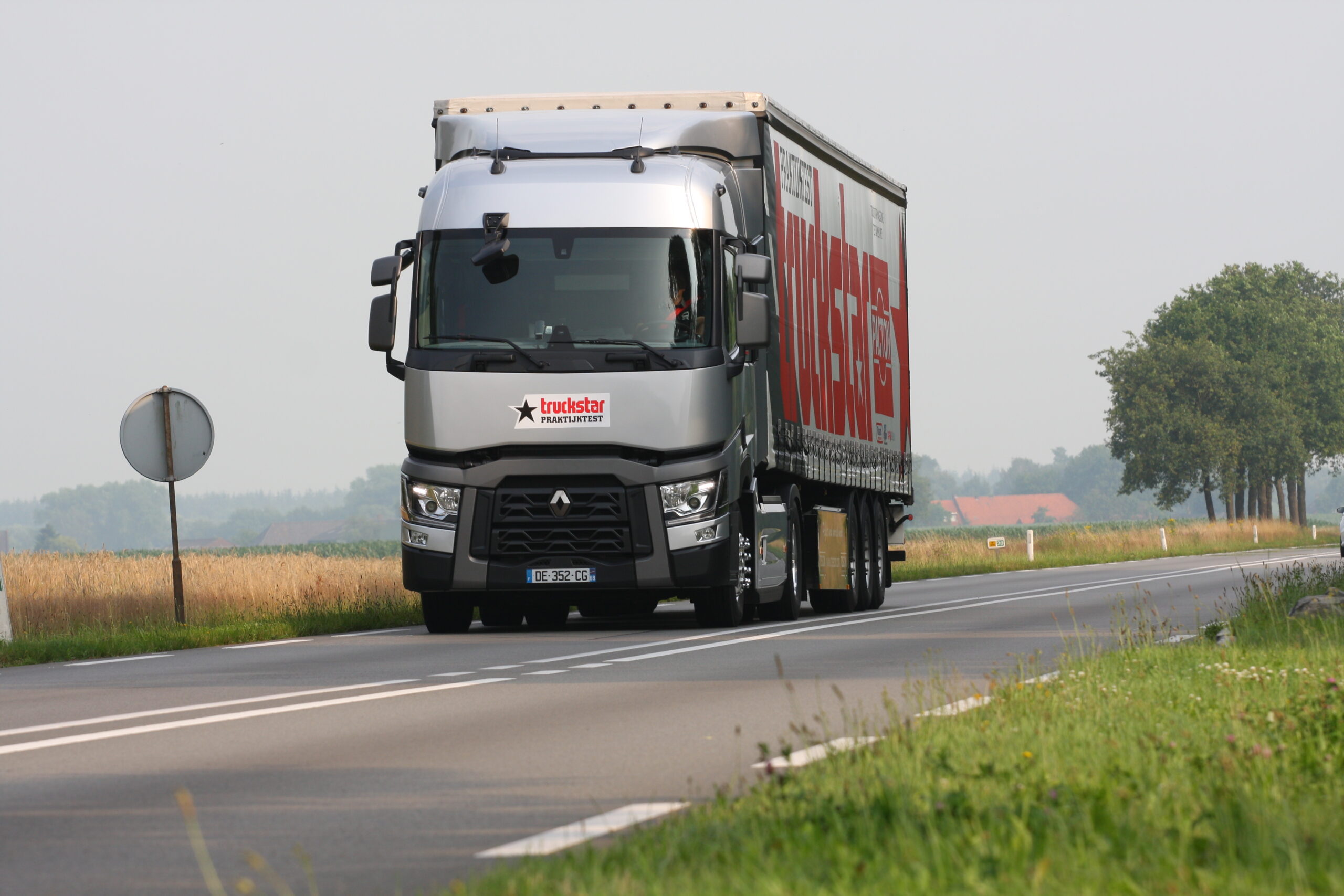 Comfort was voor de Franse ontwerpers een punt waarop de T-serie moest uitblinken. Er is maar één manier om dat te ervaren: we gaan er mee rijden. Uiteraard nemen we onze eigen testtrailer mee op onze Ardennenroute. Na het aftanken van de truck ’s om 06.00 uur draaien we bij Asten de A67 op. Daar valt meteen op hoe gemakkelijk de T-serie stuurt. De truck voelt daarnaast solide aan. Hij is stug genoeg geveerd en de 10,8 liter DTI 11-motor met 430 pk vermogen en maximaal 2.040 Nm heeft geen problemen met onze veertig ton totaalgewicht.