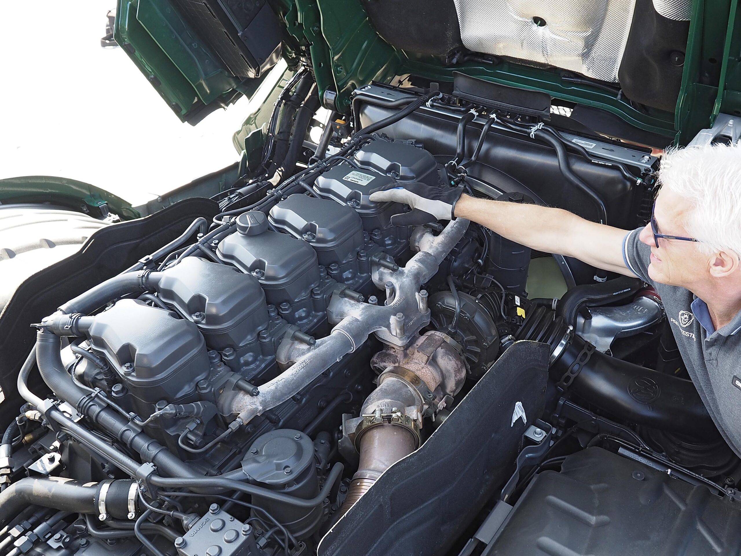 De 540 komt tegelijk met de aankondiging dat alle zescilinders nu twee procent zuiniger zijn dan hun voorgangers. Die winst, zegt Scania, wordt behaald uit het verminderen van interne wrijvingsverliezen en de toepassing van slimme aggregaten zoals water-, lucht-, en oliepompen die hun vermogen aanpassen aan de vraag. Het is techniek die we ook van andere merken kennen. Verder is bij alle zescilinders – dus van de 370 tot de nieuwe 540 pk – het uitlaatspruitstuk gewijzigd, met een verbeterde flow van de uitlaatgassen tot gevolg. Die komen nu met een hogere snelheid in de turbo en dat verbetert zowel de respons als de efficiëntie. De 500 pk en de 540 pk kregen daarnaast ook nog andere (stalen) zuigers en een turbo waarvan de as van het schoepenrad niet in glijlagers draait, maar in kogellagers. Dat maakt de R540, in ieder geval technisch gezien, tot een turbo met ballen.